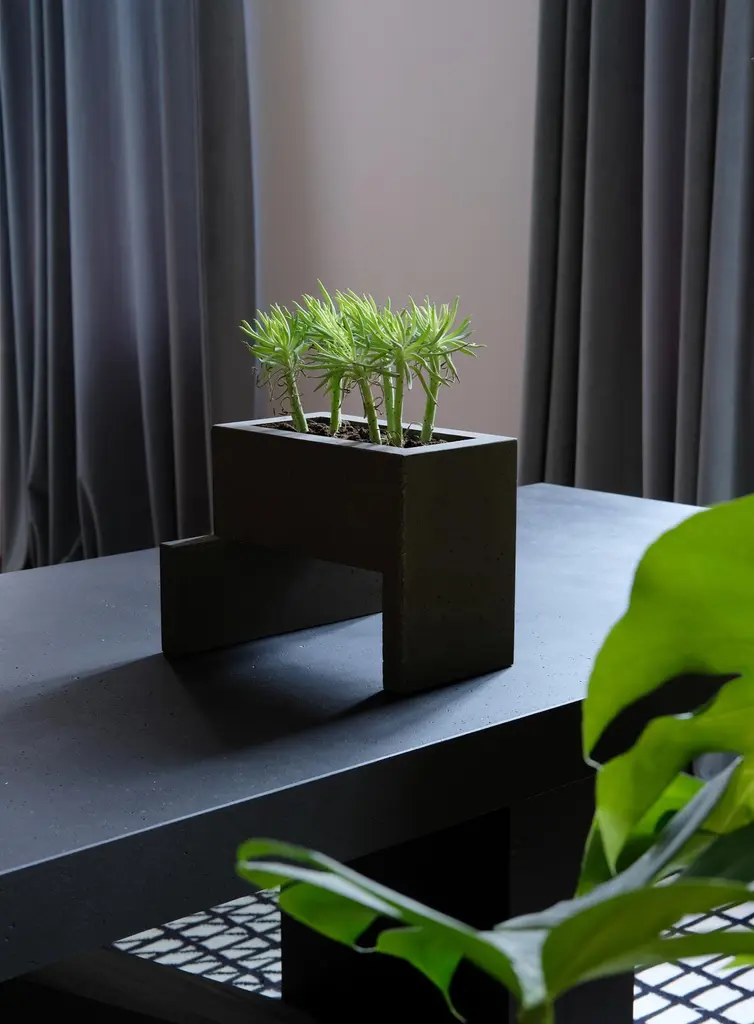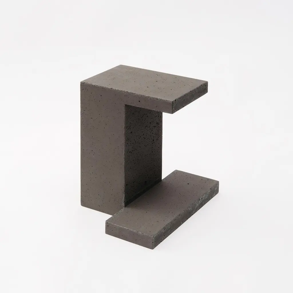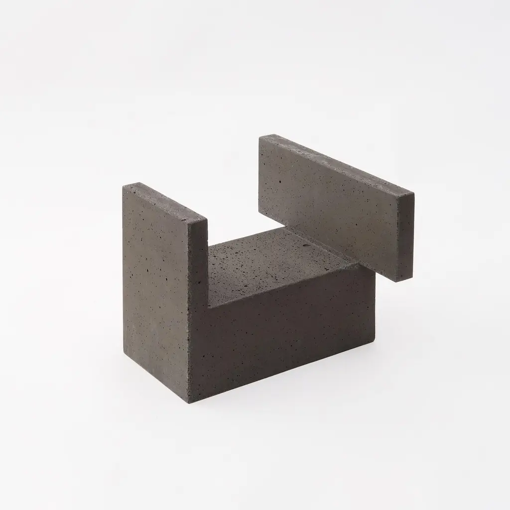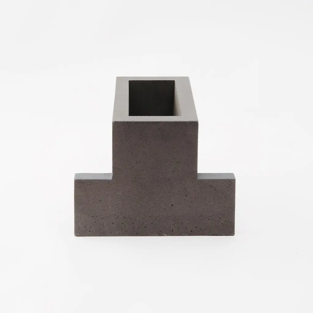 Chandigarh III - Dark Grey - Design Sculpture Paolo Giordano Cement CastChandigarh is a collection of sculptures inspired by the homonym city designed by Le Corbusier, who imagined and created it from nothing in India. The sculptures are made of exposed concrete, coloured with oxides that give the material pastel and chalky tones, each shade can mark the thicknesses emphasizing the contours. These small architectures can be used as vases, but also left bare as they are. Simple signs like an imaginary alphabet. Evocative structures revealing a world of improbable geometries.Edition of 200 pieces x model numbered and signedDesigned by Paolo Giordano.Made in Italy.Abstract sculpture has a geometric shape and hard lines, handmade in concrete or cement in Italy, suitable for home, showrooms or hotels.