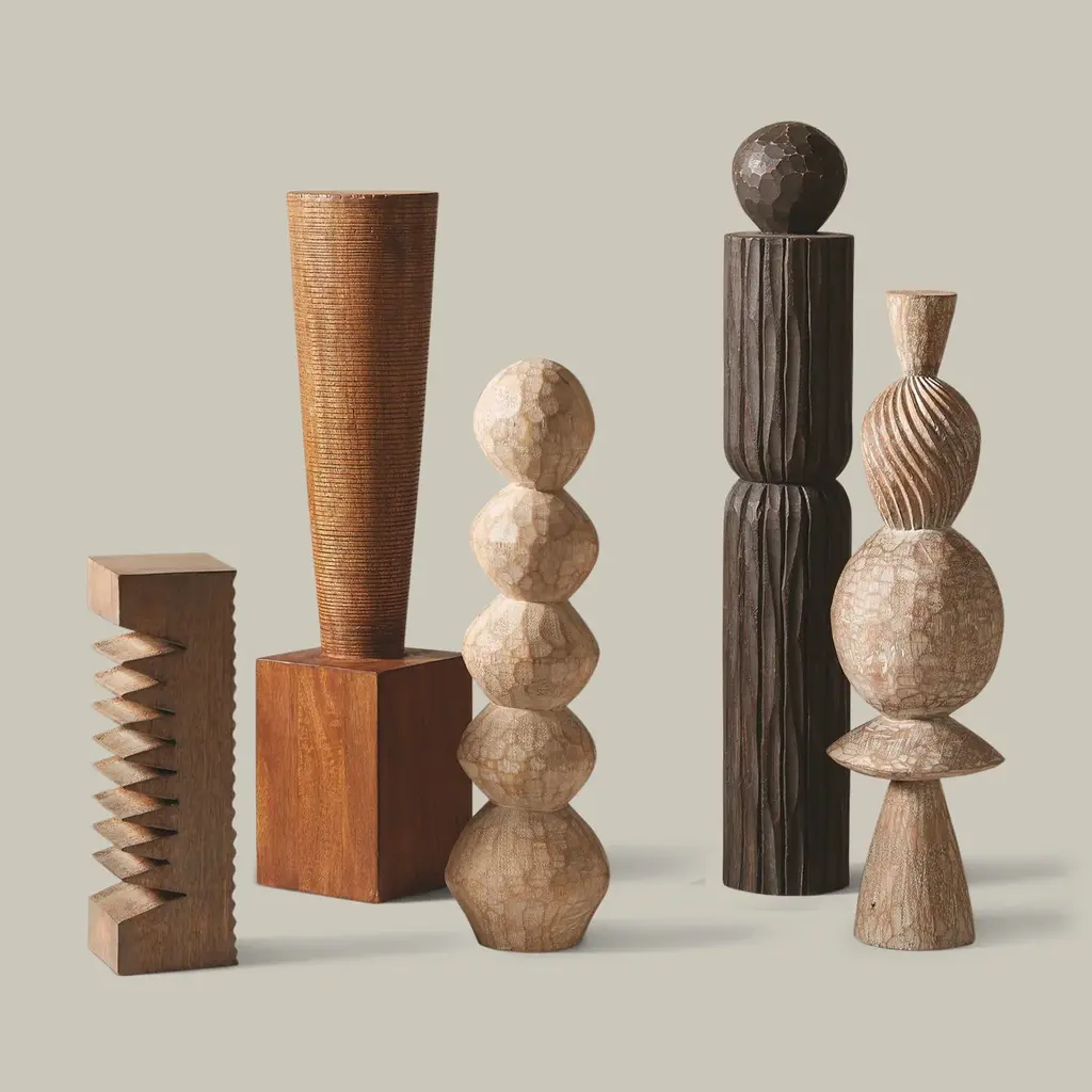 Inspired by sculpture, ancient objects, and Brancusi's atelier, the Chapon Pillar is one of five different mini wooden pillars. They can be layered together or used as single decorative accents.
