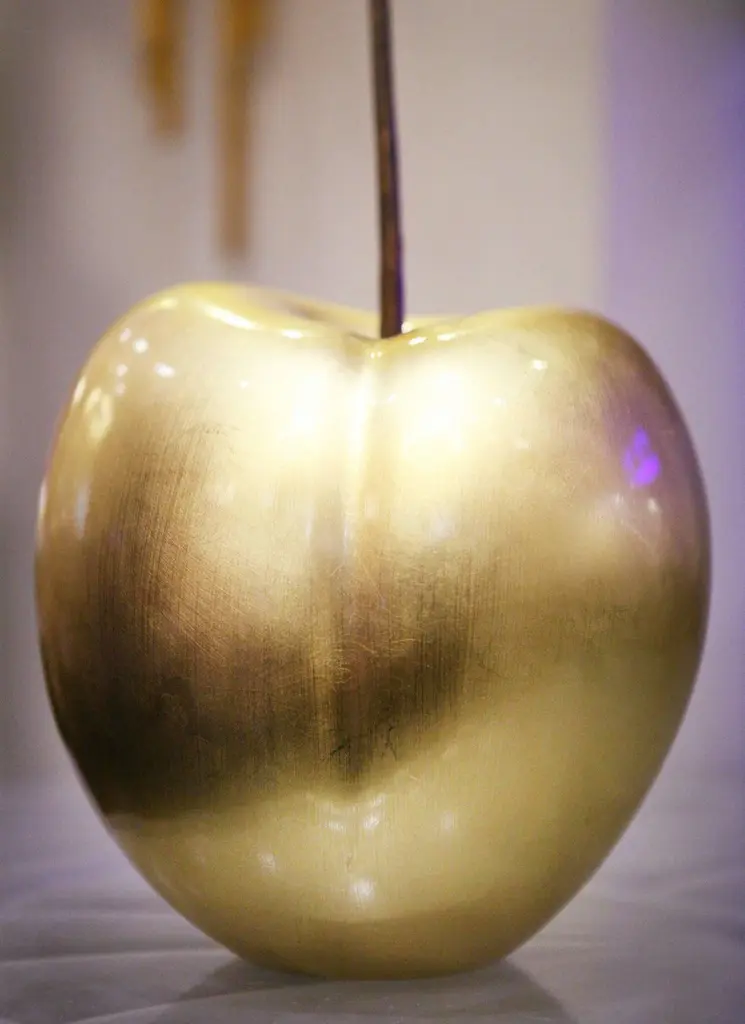 Sculpture cherry gold medium all Handcrafted in ceramic, in gold finish.Medium: L 23 x D 22 x H 67cm. Price: 960,00€.Also available in cherry gold large.Large: L 33 x D 31 x H 91cm. Price: 1980,00€.