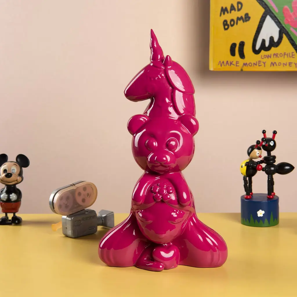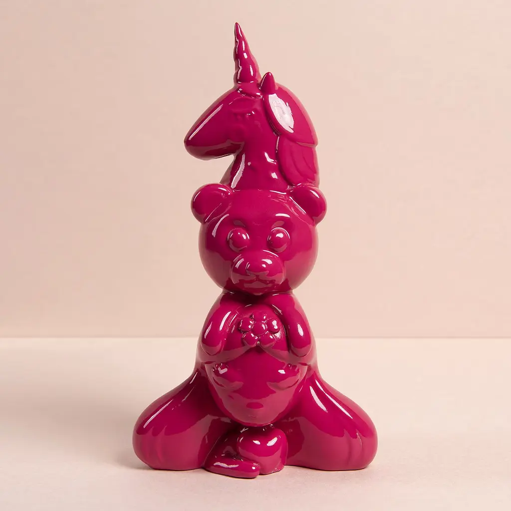 The Magic Totem is a spiritual being, considered a sacred object or symbol of a tribe, family or individual. It Is a sculpture with a symbolic meaning representing balance, evolution and protection. The unicorn is connected to the power of magic and light, the bear is the inner strength and the princess speaks for spirituality. Fiberglass, acrylic, spray, markers, glossy candy coat. This unique piece comes with an authenticity certificate.