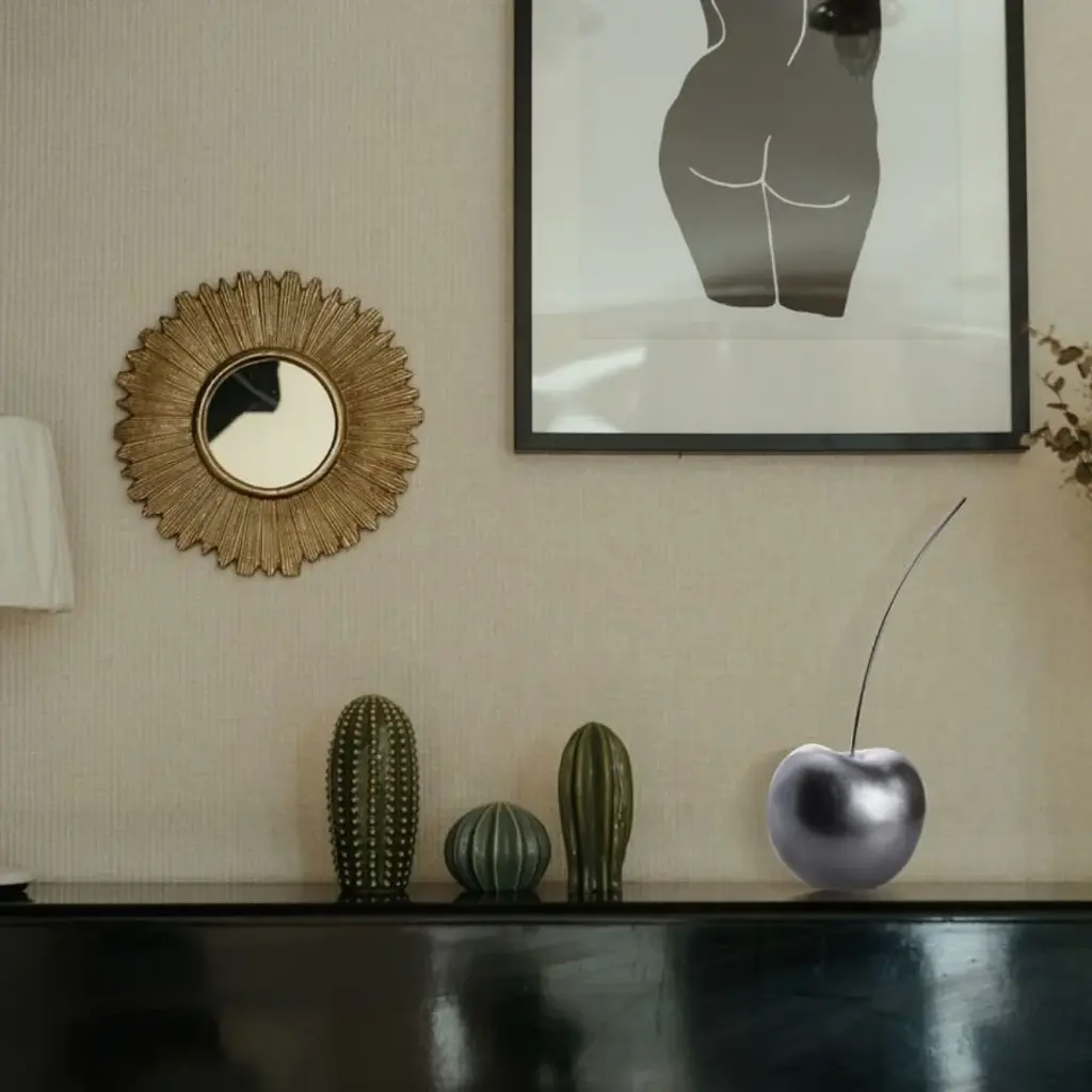 CLASSIC CHERRY DESIGN This fruit decor abstract accessory is the perfect addition for completing your modern room - placed on a tabletop, home office, kitchen, living room, dining room or desk shelf. This home decoration features a sleek and magnificent, beautiful gloss matched perfectly with the stainless-steel chrome stem.BUILT TO LAST Apart from aesthetics, Finesse Decor is also dedicated to making quality home decor that can last through the years. This cherry tabletop decor is created with a combination of eye-catching design and supreme build quality. Everything from careful aesthetic detailing to top-notch finishing is given utmost importance to crafting each piece to give your home a touch of elegance. Here’s why you should consider this cherry tabletop decor as a must-have: -This table decor has a realistic and beautiful smooth glazed look for gorgeous modern art -The home office desk sculpture is made from premium-grade quality materials to ensure maximum durability A table centerpiece that can be a great living room decor, office decor, bedroom decor, art set accent table, small table, or dining room table - This simple room decoration makes perfect gifts for any occasion. This vintage cute room decor can be great couple gifts for Christmas, wedding gifts for friends, gifts for husbands or gifts for wives, fun gifts for office coworkers, or for anyone with a new home.FIND YOUR FINESSE For the finest home decor, look for Finesse Decor products. With inspiring and unique sculptures, you can be sure that the object which defines your eating, working, or relaxing space is the perfect addition and the new focal point of conversation.