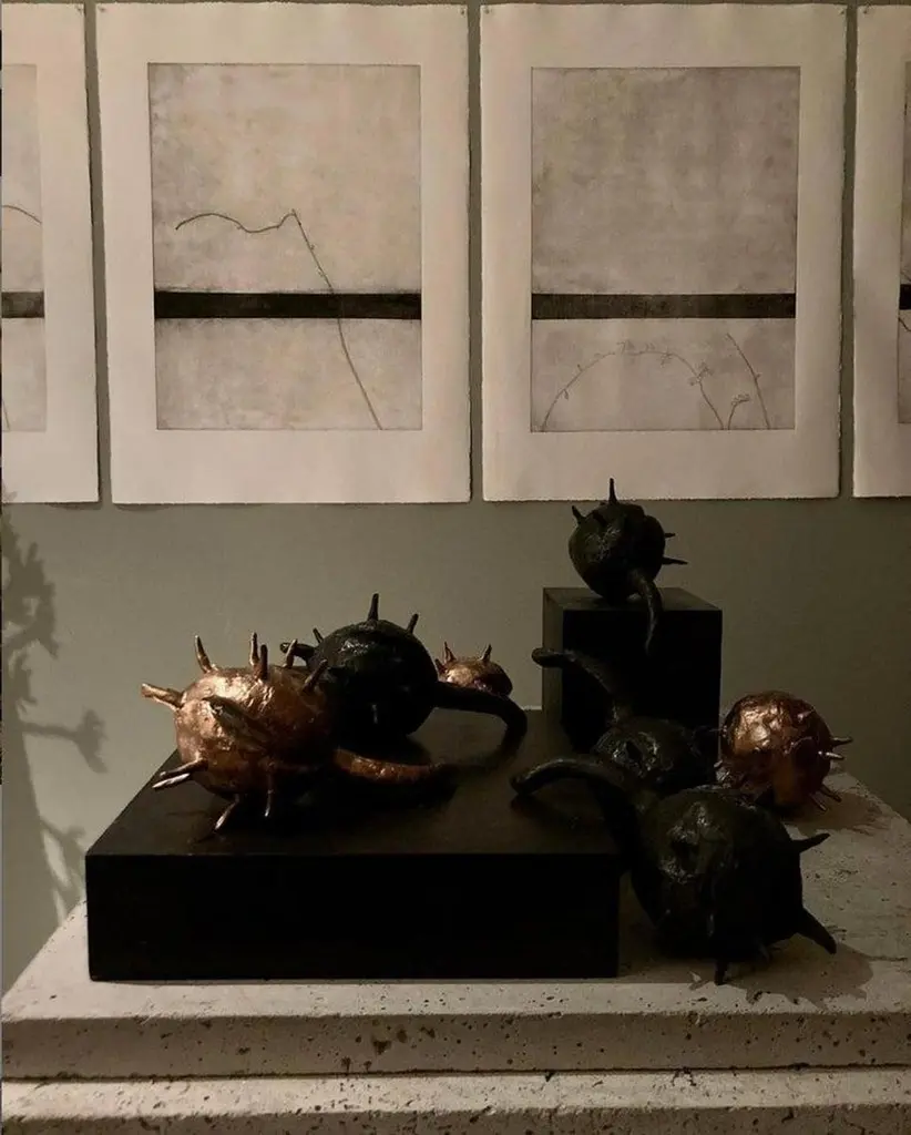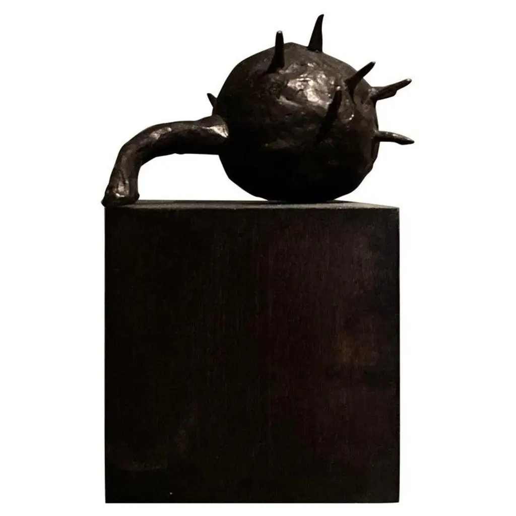Chestnut sculpture by Herma de Wit, 2019Edition: 30 + 2APDimensions: 8 x 17 x 9cm, socle: 12 x 12 x 12cmMaterials: bronze, stained wood.Nature, a boundless source of inspiration and pure beauty. Those who are not touched by it miss access to what is fundamental. It is perhaps at the core of what so many artists, scientists and philosophers want to tell us. Herma de Wit - Orobio de Castro was so moved by everything she saw around her as a young girl that it was to make its mark on her. Decades later, after studying technical fashion followed by fashion at the Gerrit Rietveld Academie and a short prestigious career as a fashion designer she turned back to what had drawn her before her worldly ambitions. Back to the emotion, an intimate entanglement of existential pain and deep wonder.Herma de Wit - Orobio de Castro’s work, her bronze sculptures, objects, drawings and etchings, reveal an almost obsessive relationship with nature – the mainly isolated fragments of flora, sometimes a whole animal. Her meticulous studies and fervent interpretations of her chosen subject, a twig, a leaf or cluster of flowers, appear to be a desire to eternally capture both its power and fragility. The work is often enlarged or given an intimate scale. While one is dramatic another seems nonchalant or painfully shy. In the stillness that the artist seeks, she seems to want to create an almost human portrait. Though nature itself is not art - its creation is far beyond our imagination - looking at it can make it art. As someone who is self-taught in the visual arts, Herma has a very intensive working relationship with the welders and bronze founders who help realise her work. The transition from a drawn study to a 3D realisation can be extremely complex. Nature cannot simply be copied. The work is therefore a one-off in some cases though, where possible, there can be a small edition of 4 to 8 pieces. The end result has a stillness to it, a sense of being and not perishing.
