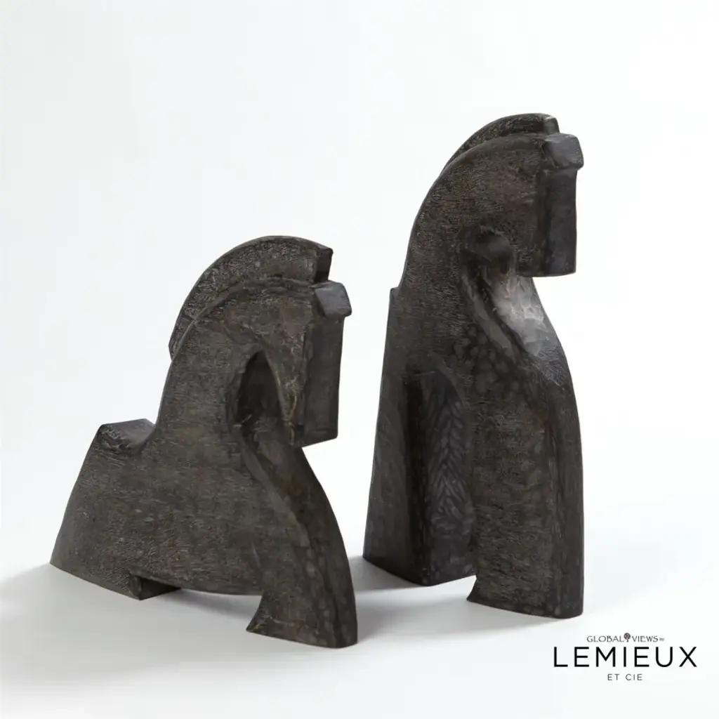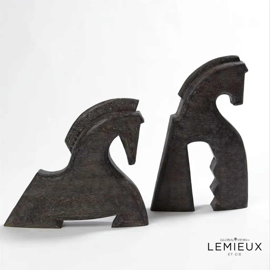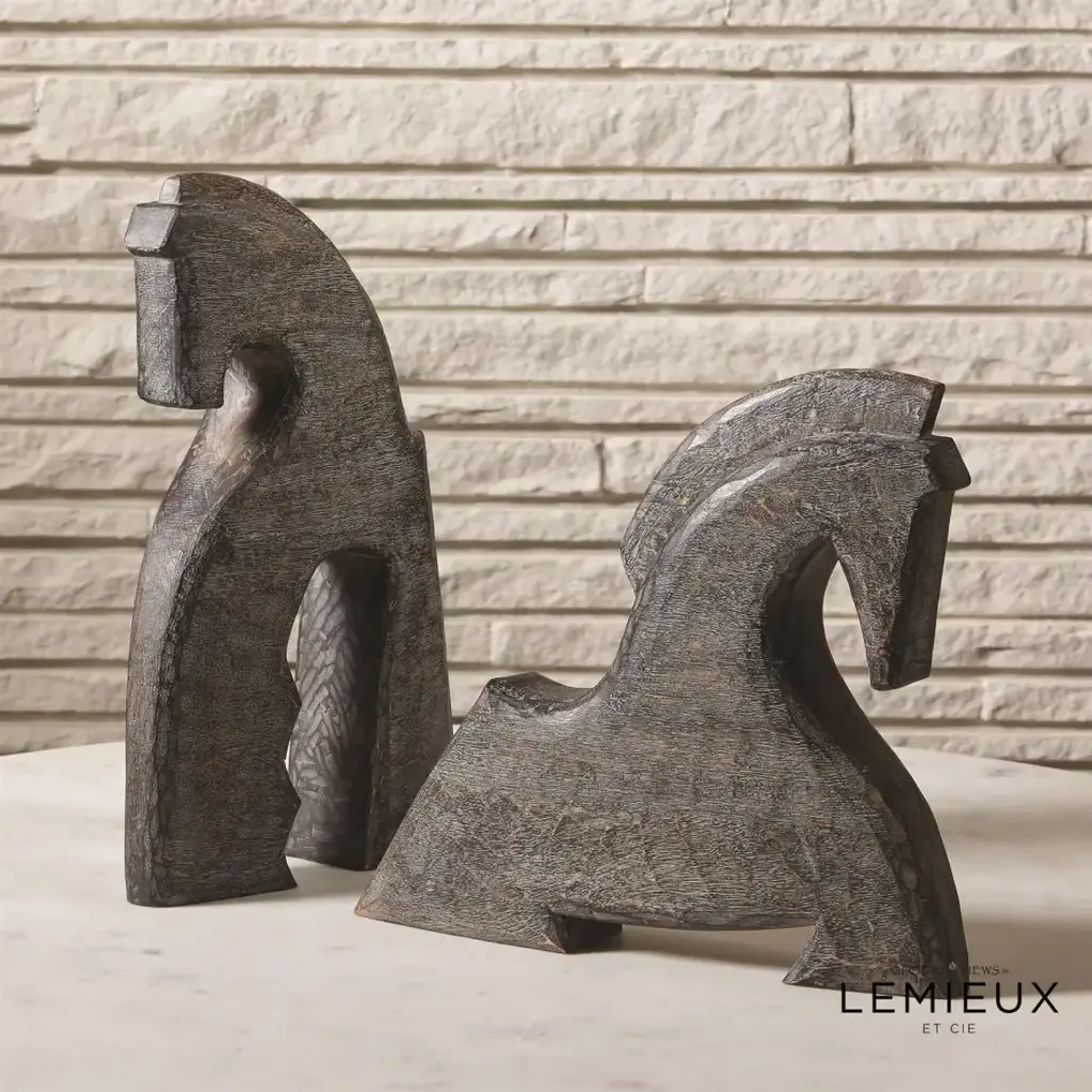 The Cheval object takes its design from both the Ancient Roman and the Art Deco eras. The horse has long been a symbol of culture, elegance, and nobility. These sculptures beautifully bring these qualities to any space. Best displayed together as a dramatic pair, these striking objects are sure to transform any surface. From a fashion forward perspective, Global Views offers accessories, furniture, statement lighting, and an assortment of rugs and mirrors to add beauty and joy to your home.