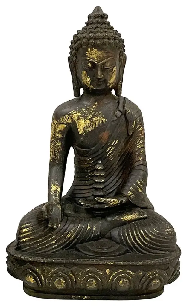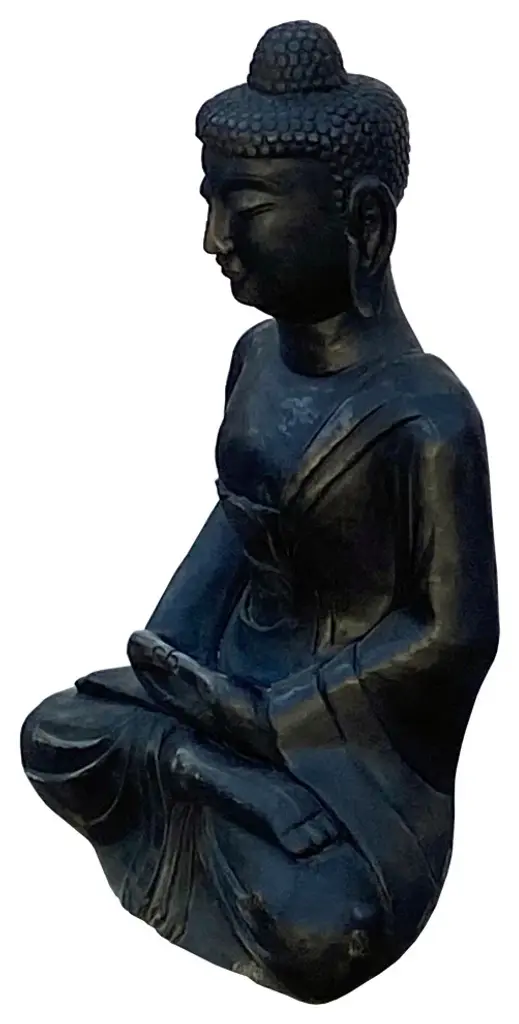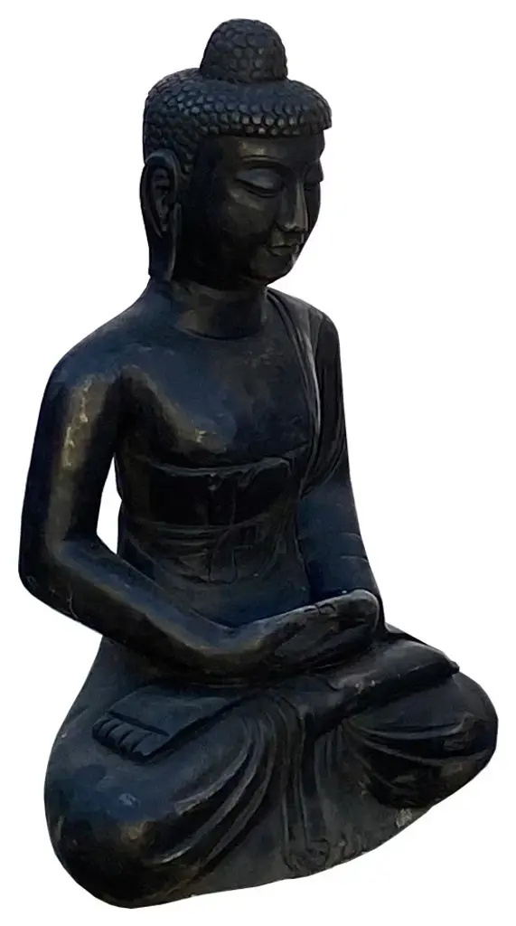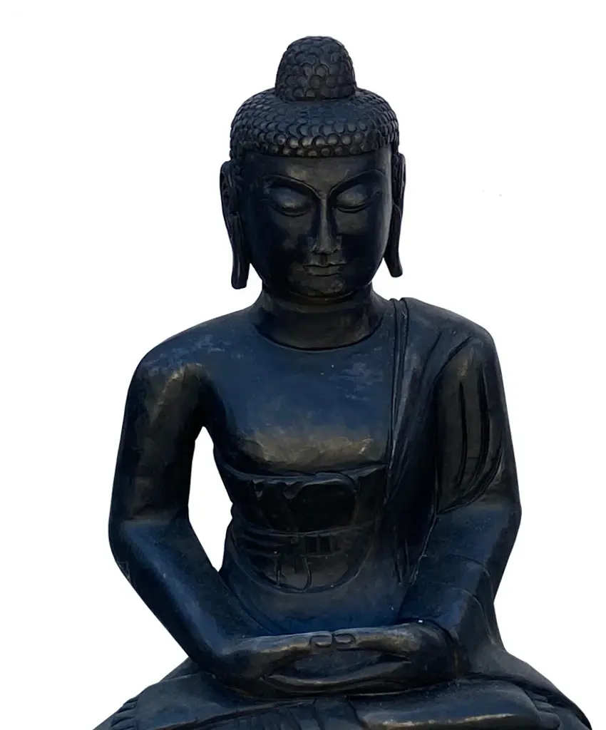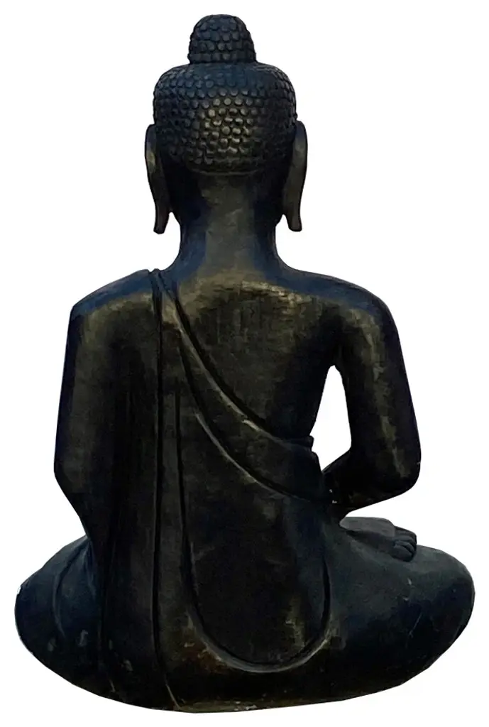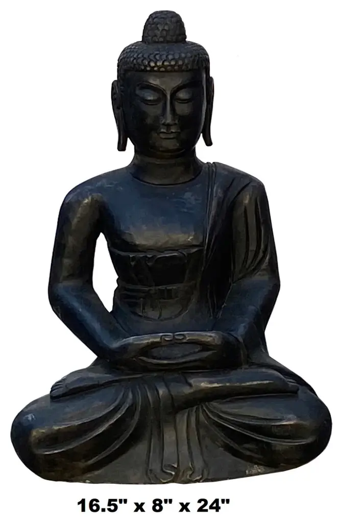 This is a black color stone statue of oriental Zen Amitabha Shakyamuni Buddha in a sitting position with prayer hand posture. It is good for the Zen theme garden or indoor entrance.Dimensions: 16.5" x 8" x 24"Origin: ChinaMaterial: StoneCondition: hand-carved, natural stone patina and marks