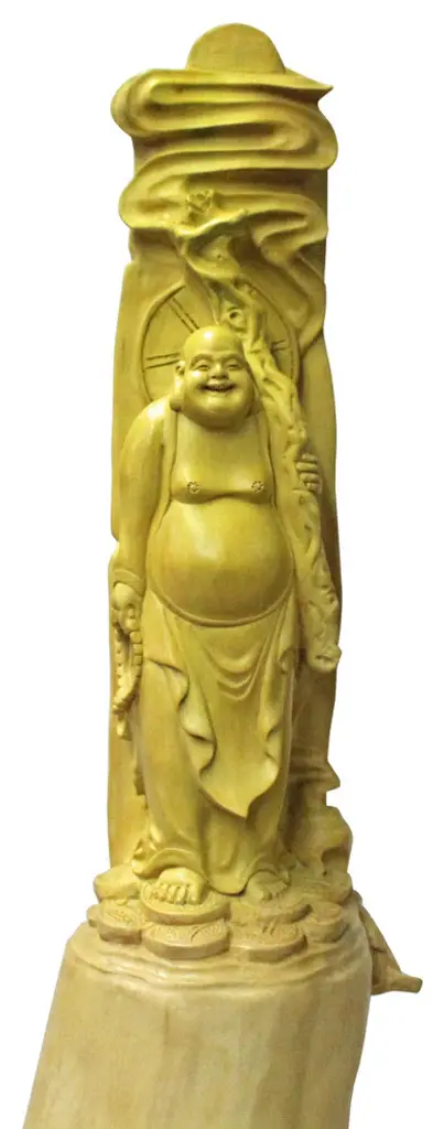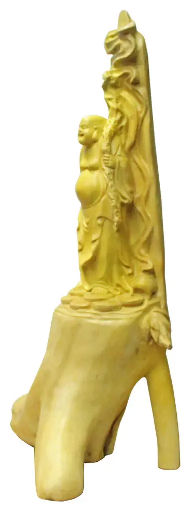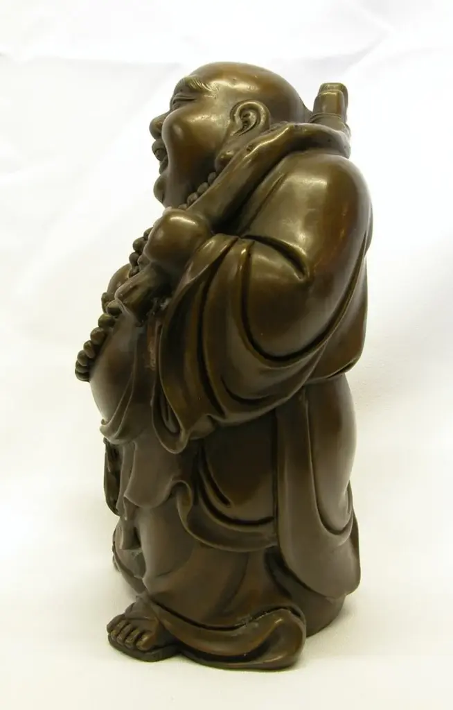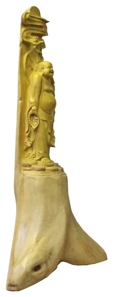 Chinese Cypress Wood Carved Irregular Shape Happy Buddha Statue Hcs4138