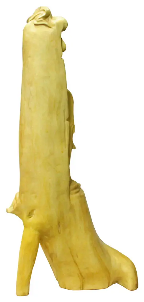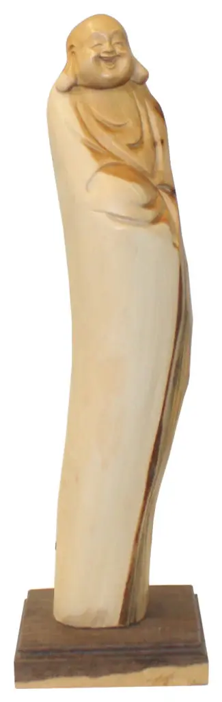 This is a handmade Chinese accent decorative statue of Happy Buddha from natural raw wood with an irregular shape.Dimensions: w9.5" x d7"x h19.25"Origin: ChinaMaterial: Cypress woodCondition: Handmade, natural wood imperfection and wood crackEra : recent made 2017 new