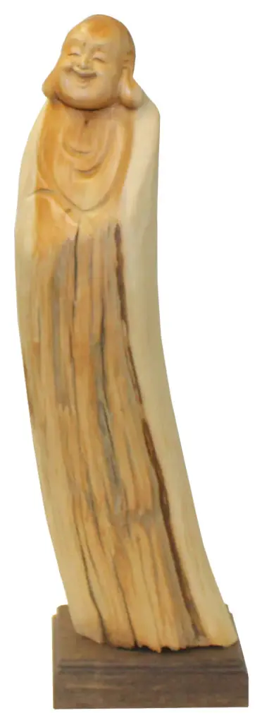 Chinese Cypress Wood Carved Irregular Shape Happy Buddha Statue Hws1006