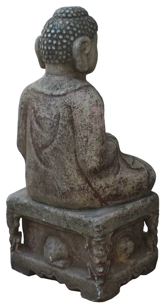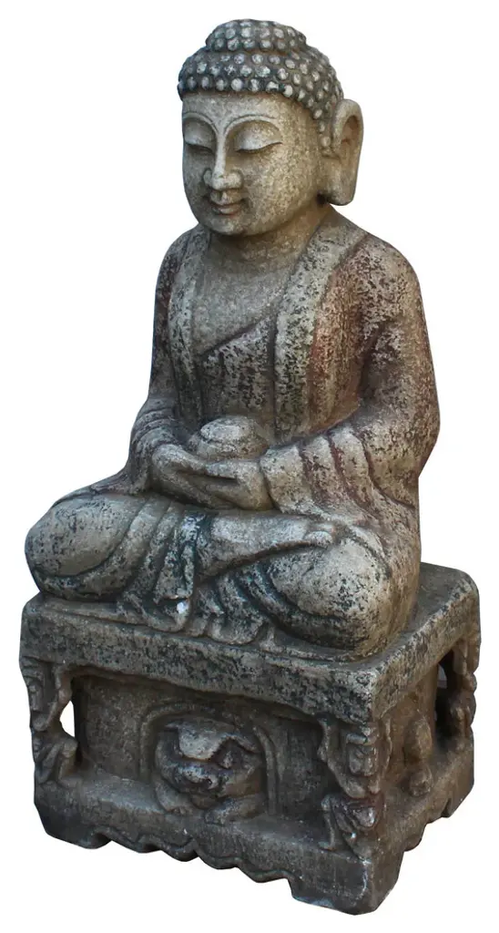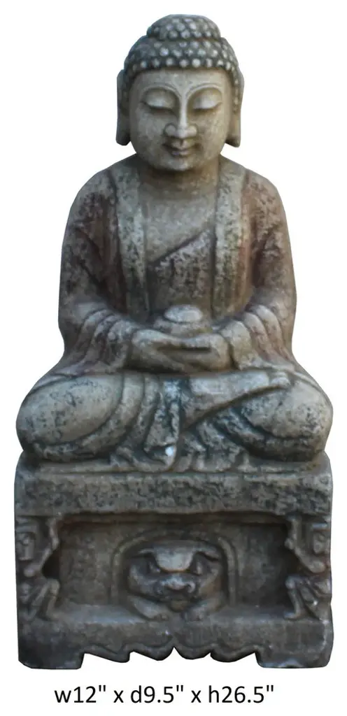This is a sitting Chinese Buddha carved from brownish gray color stone. It is in meditation cross leg posture. The body is carved with decent robe dress and fade blue and red patina finish. It is a nice piece for Zen garden design or in door home decoration. Dimensions: w12" x d9.5" x h26.5"Origin: ChinaMaterial: StoneCondition: hand made, natural stone imperfection, minor chip marks, as itEra: RecentUS domestic continental buyer of 48 states pays $350 shipping charge for curbside delivery. Customer from Hawaii, Alaska, US Island, Florida Keywest, and Canada pays extra shipping cost. Insurance and handling charge are already included in the shipping cost. In-store pick-up is highly welcomed if you are in San Francisco Bay Area. (No charge) White-Glove service can be arranged with additional cost.For customer who is looking to buy multiple items. We can either combine "œseveral items on the same pallet "œor "œinclude small items inside the largest item as long as it fits in"�When your shipment is delivered, carefully inspect the outside of the packaging before the delivery personnel leave. It is important to clearly indicate if there is any visible damage to the packaging or items on the delivery paperwork. Carriers usually do not honor concealed damage claims so it is crucial to clearly indicate any visible damage to the packaging or items on the delivery paperwork.