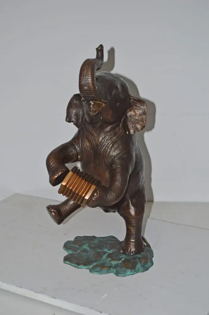 Circus Elephant Dance And Play The Accordion Bronze Statue - 13" X 11" X 22"h