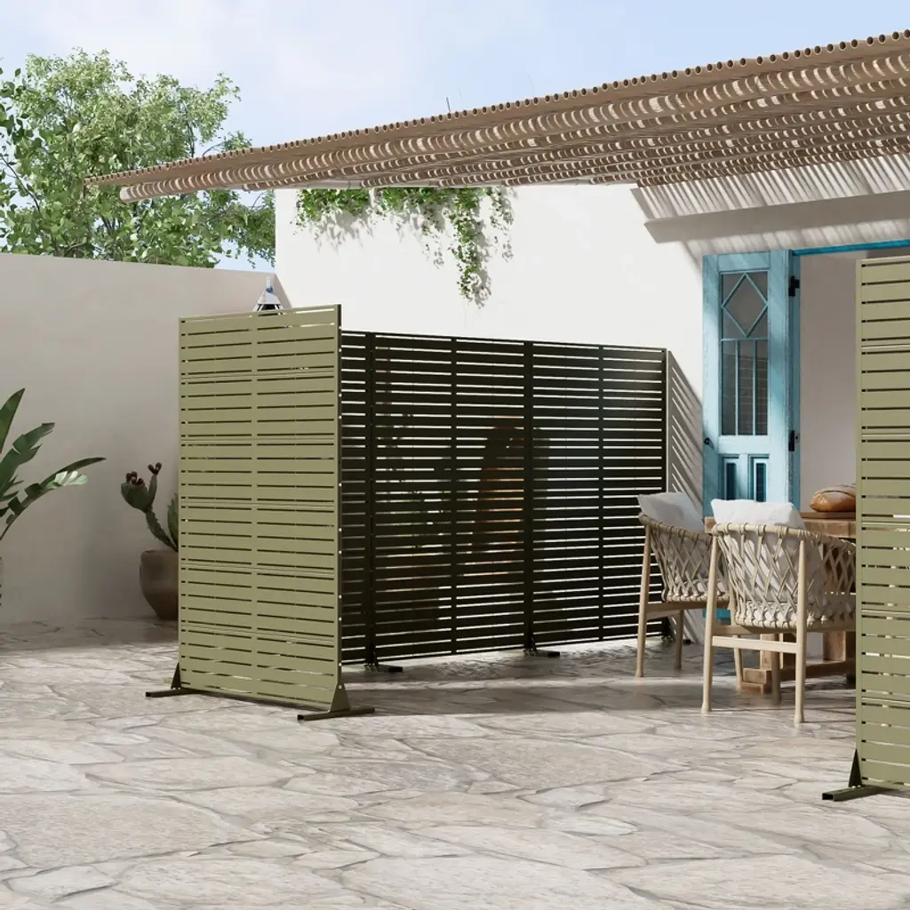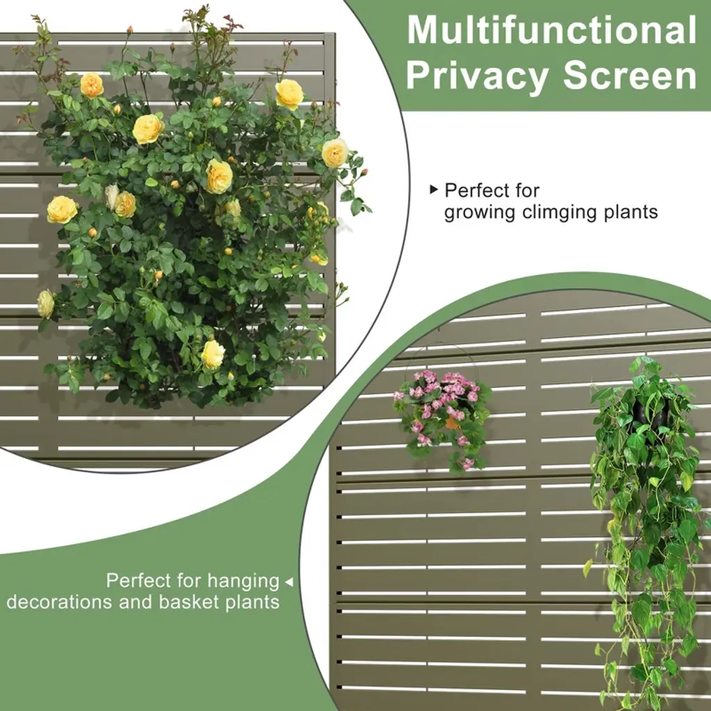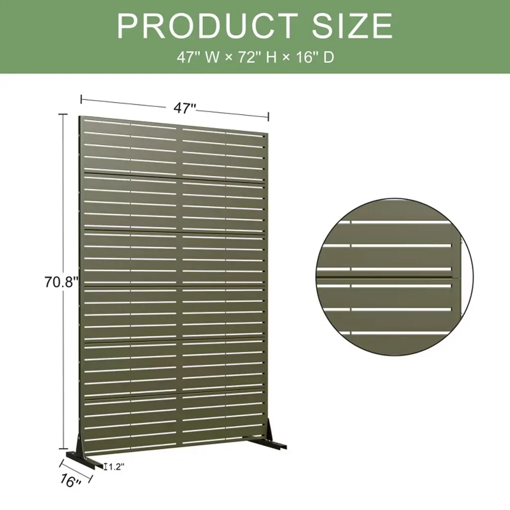 This freestanding decorative screen is designed to enhance your deck, balcony, patio, or any outside area like a lawn or garden. Crafted for durability and style, it serves as an elegant privacy fence panel, adding a touch of sophistication to your environment while providing seclusion. Its robust construction ensures it can withstand the elements, making it ideal for year-round use. Whether you’re looking to create a private oasis or simply add a decorative element to your space, our Metal Privacy Screen is the perfect choice. Upgrade your outdoor or indoor area with this functional and visually appealing privacy solution.