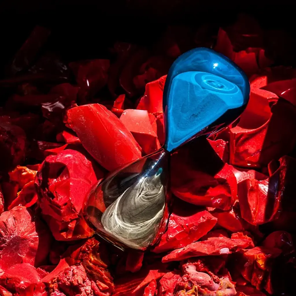 The Clessidra Sculptures from Venini, designed by Fulvio Bianconi in 1957, turn the passage of time into poetry through glass. These Italian-made hourglasses contain sand that appears to change color as it falls between two perfectly balanced glass chambers. Bianconi's genius lies in how the sand adopts the hue of each section it passes through, creating an ever-changing display. The piece, handcrafted in Italy's renowned Murano workshops, reflects both adroit craftsmanship and philosophical contemplation, making time itself visible through artistry.