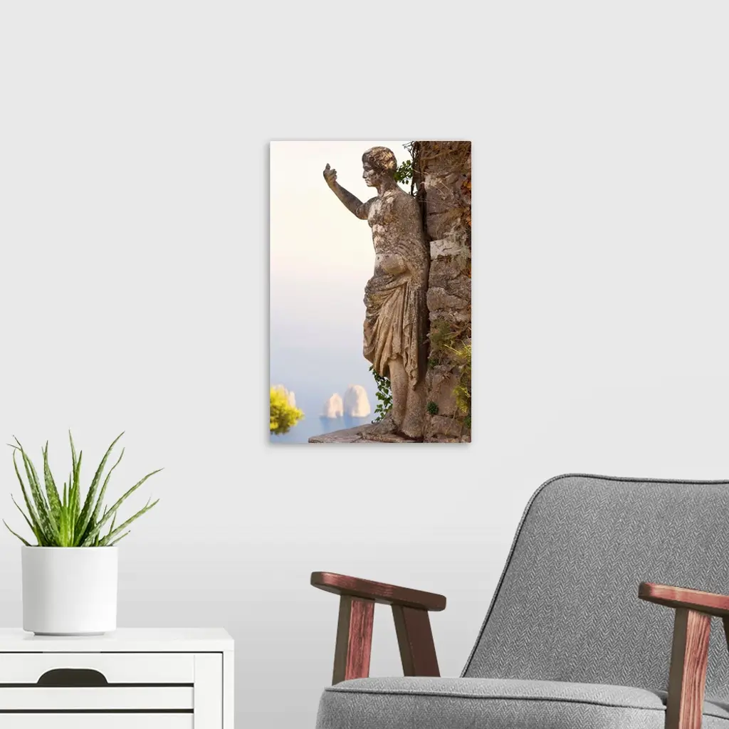 Close-up of a statue of Emperor Augustus, Monte Solaro, Faraglioni Rocks, Capri, Campania, Italy