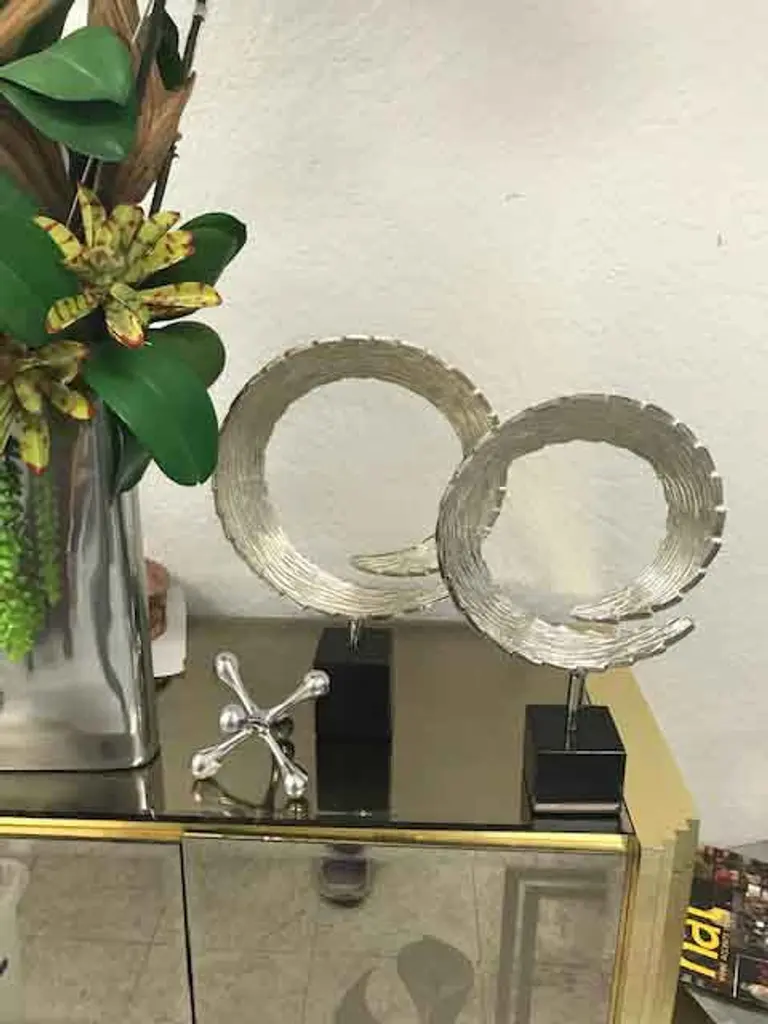 Add a dynamic touch to your decor with this unique curled tail shaped small sculpture supported by a rich marble base. This eye-catching design adds intrigue and style to any space. Console tables, book shelves, pedestals or any other place that an accent is needed, are the perfect places for this elegant sculpture.