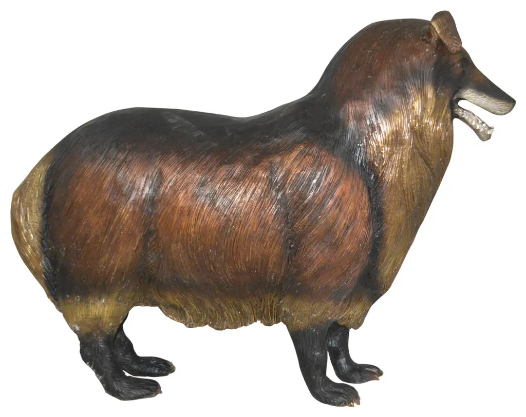 This life size Collie Dog Bronze Statue reflects the wonderful qualities of these beautiful dogs. The Collie Dog is a well-known breed for herding sheep throughout the world. No wonder they are one of America"™s most beloved breed of dog. This Collie Dog bronze statue would be a great addition to your home or garden. Size: 31"L x 9"W x 24"H. Weight is: 48Lb