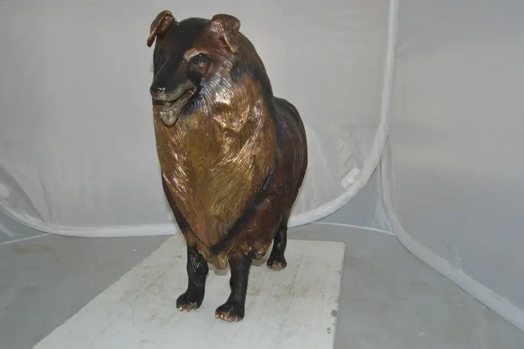 Collie Dog Bronze Statue - Size: 31"l X 9"w X 24"h.