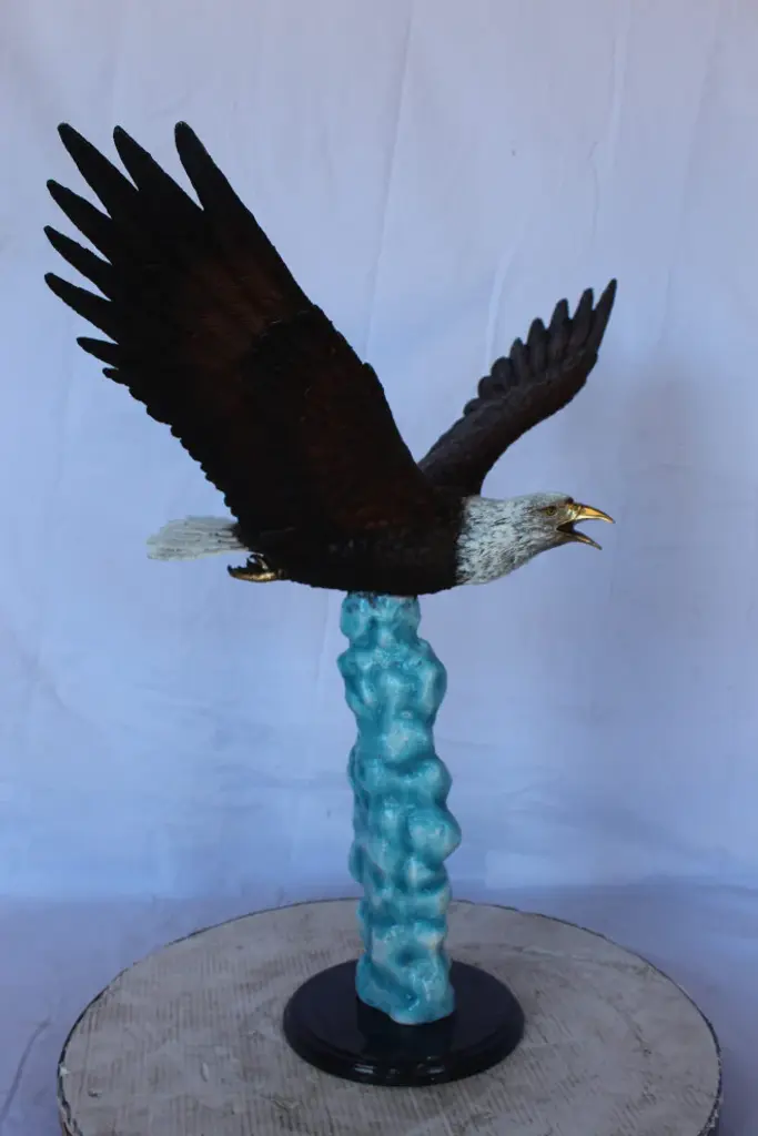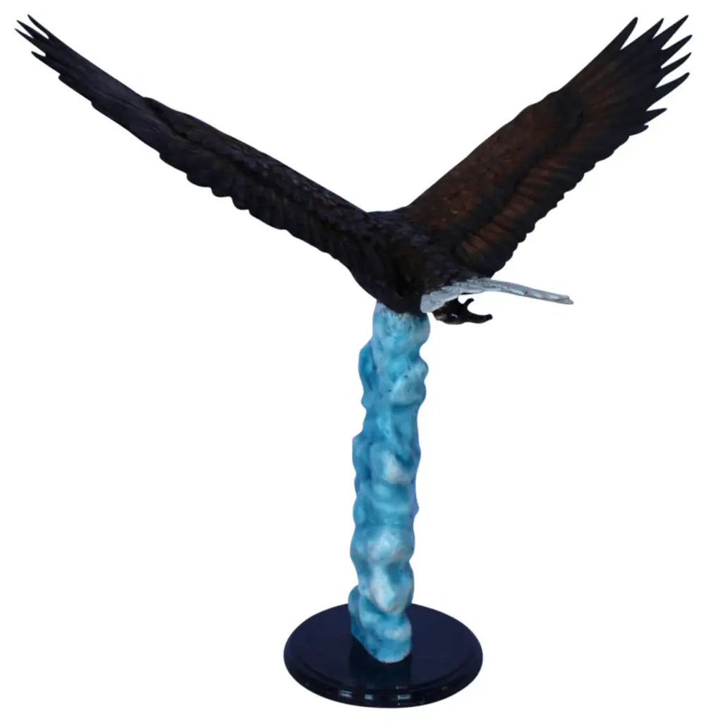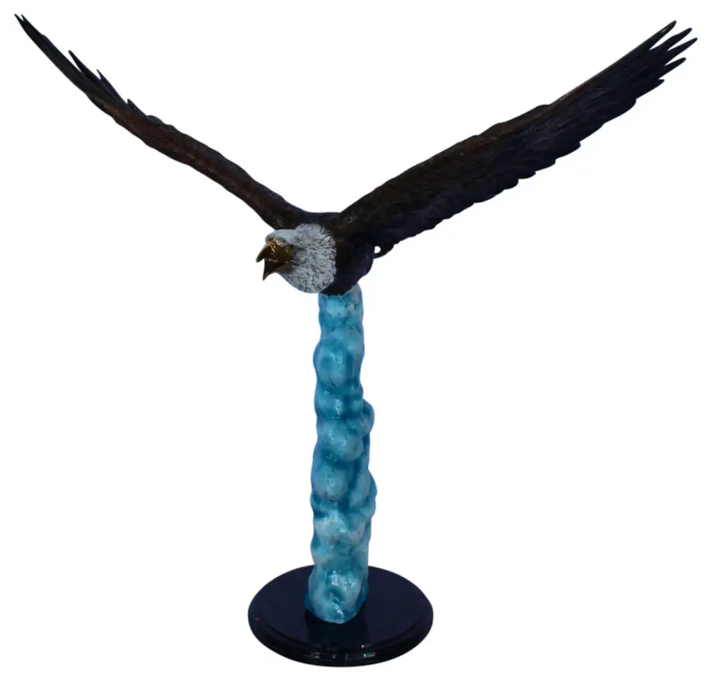 Colored Soaring Eagle Bronze Statue - Size: 32"l X 18"w X 29"h.