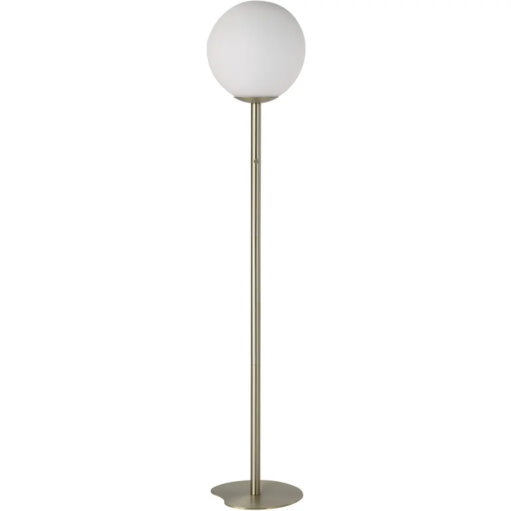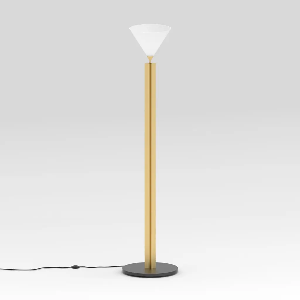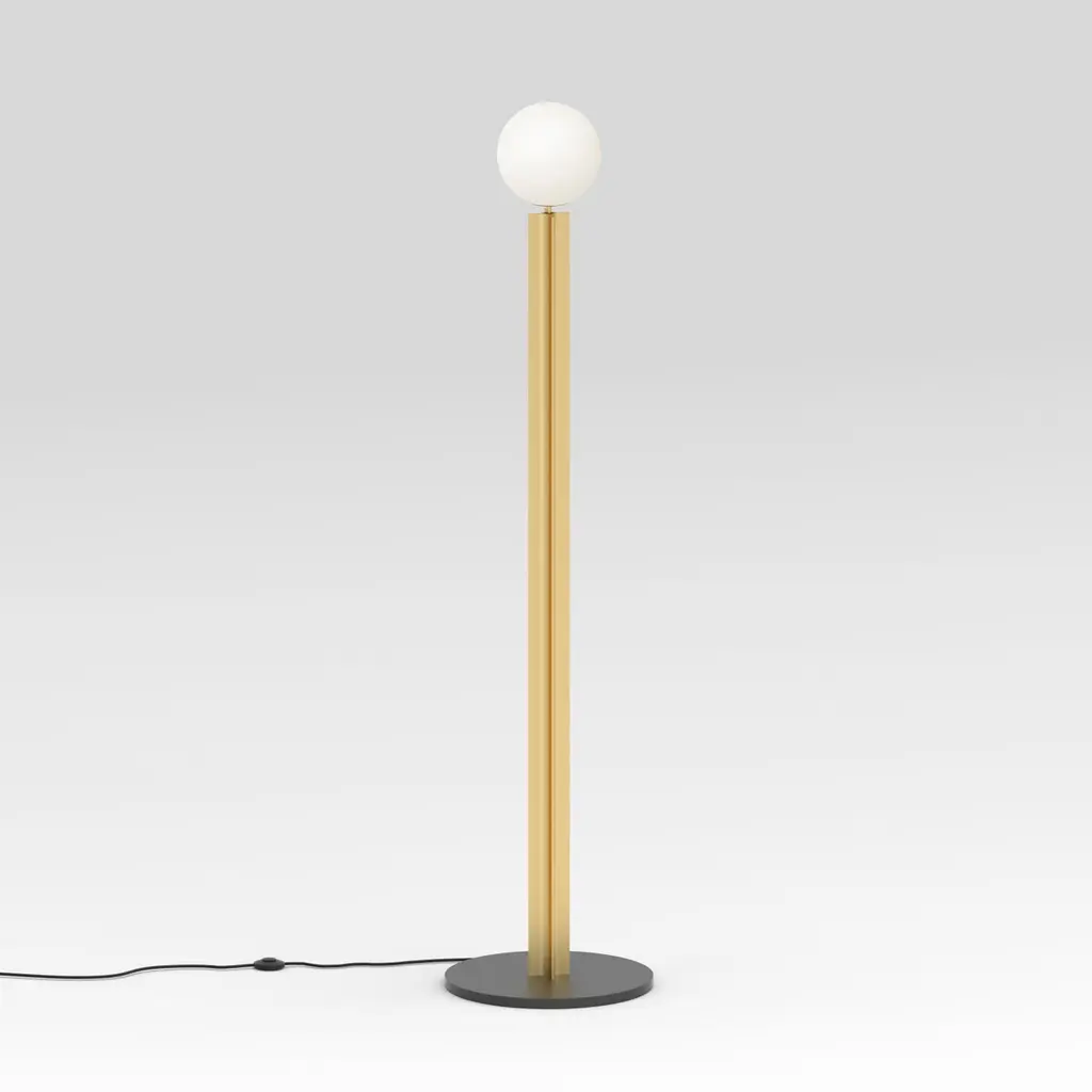 Column Floor Light by Atelier AretiDimensions: D 40 x W 40 x H 173.5 cm.Materials: Brushed brass, powder-coated metal, white glass.Available in globe or cone versions.All our lamps can be wired according to each country. If sold to the USA it will be wired for the USA for instance.Atelier Areti was established by sisters Gwendolyn and Guillane Kerschbaumer.Gwendolyn and Guillane’s background is in visual arts - drawing and sculpture, architecture, and design. Their work reflects this interest in both the object and space, exploring and existing between the sculptural quality of the object and its spatial dynamic.‘We strive to develop something new and beautiful through our work. We are driven by curiosity and the desire to explore works that touch us on a deeper, direct emotional level as well as engage us in a more conscious conceptual way.These artistic ambitions need to be realized and developed in the actual material product. The material realization gives the design it’s place in our daily life. A well done object will be valued for a long time; we aim to create pieces that remain relevant through their beauty, function, and quality.’