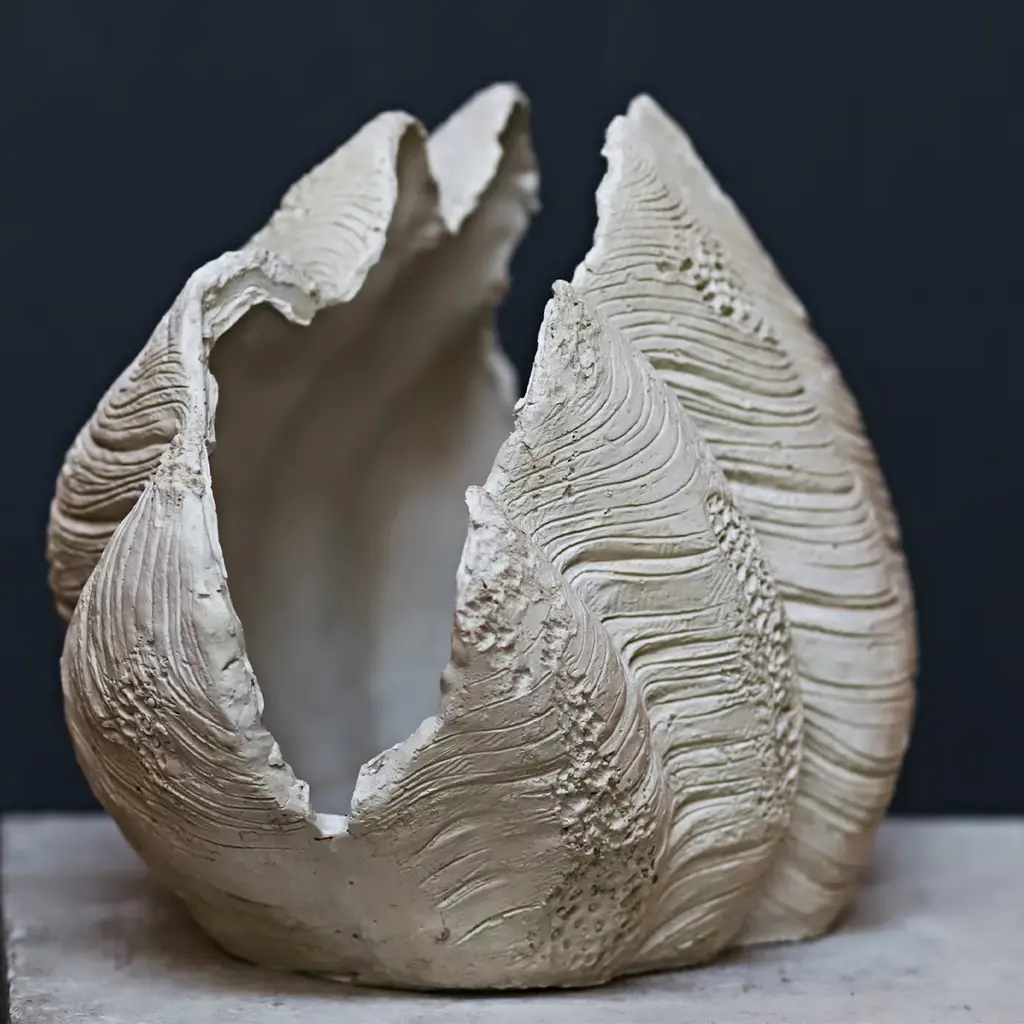 Splendidly handcrafted of gypsum by Romanelli artists, this gorgeous sculpture depicts a shell ("conchiglia" in Italian) minutely rendered with great attention to detail. Enhanced with a central crack that makes it even more realistic, it can also be used as a magazine rack next to an elegant sofa or armchair of any style decor.