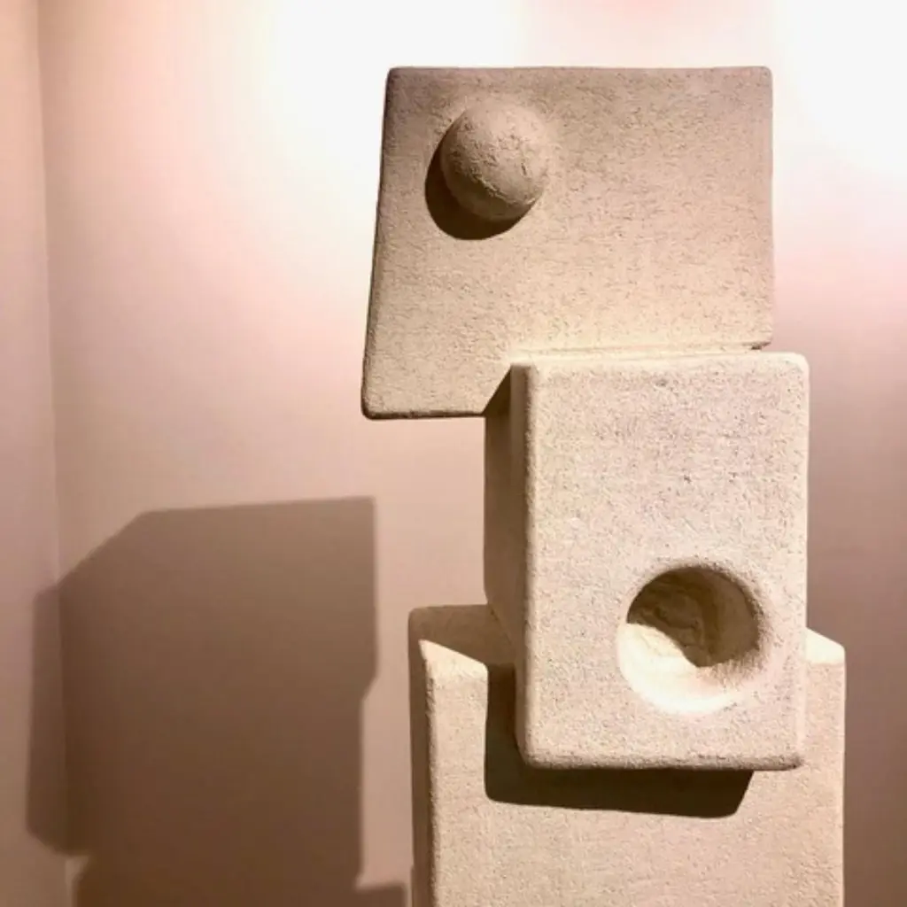 Concrete and Clay Totem 160 by Frederic TexierDimensions: W 40 x D 25 x H 160 cm. Materials: Concrete coated with lime and cement.Color: Cray. Artist Frédéric Texier expresses a passion for craftsmanship through his work, using abstract sculpture as an outlet for emotions. Sculpting brutalist and reassuring shapes in concrete blocks left over from renovation sites, Texier creates beauty across unique totems, consoles, floor lamps and candlesticks.