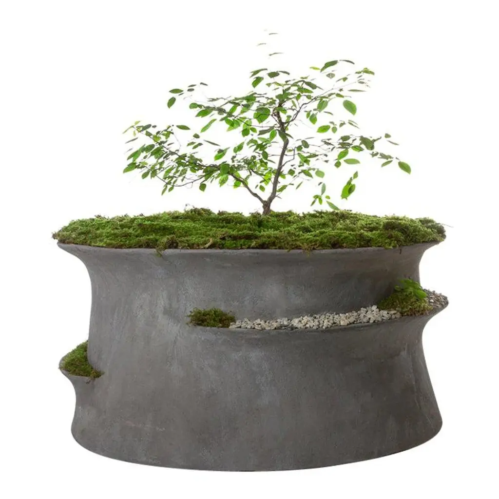 Opiary is a Brooklyn-based biophilic design and production studio. We integrate nature in each of our designs, incorporating live greenery and organic shapes into bespoke furniture, planters, and sculpture. Through the ethos of biophilia, our work reflects the shifting, yet timeless relationship between humans and nature.This modern, lightweight concrete planter features an organic silhouette and earthy aesthetic that compliments the live plants inside it. The Echelon is handmade in our Brooklyn studio and can be produced in the color or finish of your choice. Opiary planters come in various forms-- some fill more vertical space while others are horizontal. We recommend pairing the Echelon with Barchan and Jabbah planters for maximum design impact. All planters can float on hidden casters to make rearranging your space easy.DETAILSIndoor/outdoor use and extremely weather-resistant.Option to be watertight or include drainage holesFINISHESAvailable in earth, white, light grey, grey, dark grey, and black GFRCPricing varies based on finish. Please message before purchasingPrice listed is for our standard light grey optionPictured here in our grey cement optionAll Opiary pieces are handcrafted and made-to-order, and dimensions/finishes are approximations. Clients are welcome to visit our Brooklyn studio during the fabrication of pieces.MODIFICATIONSIntegrated casters available for an additional cost. Live or silk plants included for an additional cost.Custom sizes available upon request.