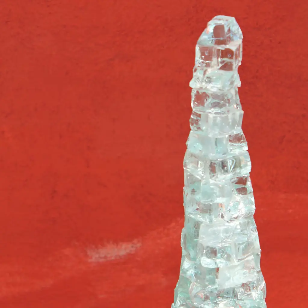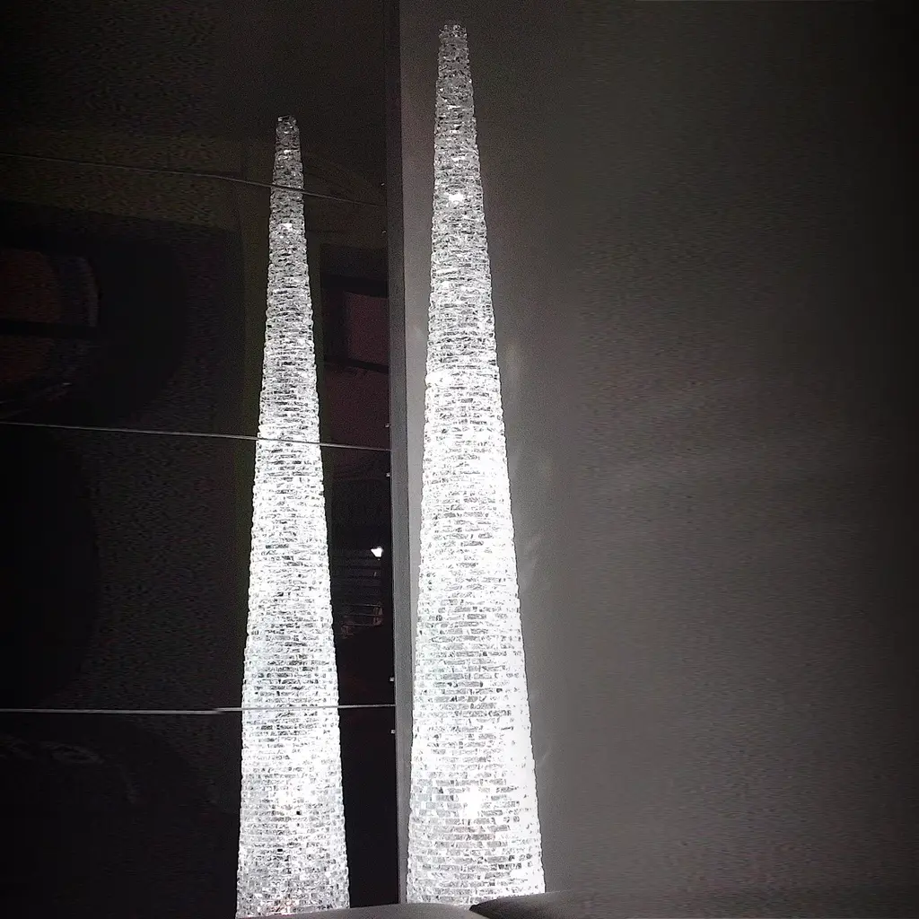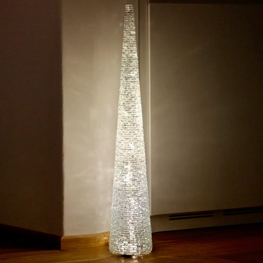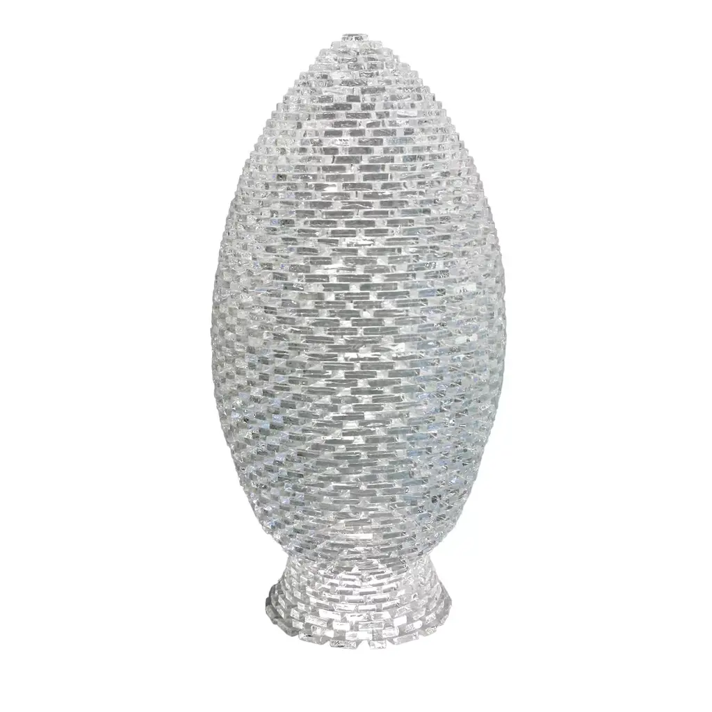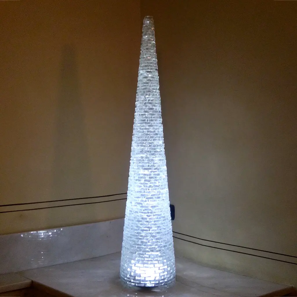 The magnificent conical shape of this unique sculpture by Gianfranco Coltella is emblematic of a symbolic light rising towards the top of the cone, reminiscent of the Tower of Babel indicating the right path. Deftly handcrafted, it is comprised of hundreds of glass pieces assembled in a singular shape inspired by Egyptian architecture. Enriched with an LED light source.