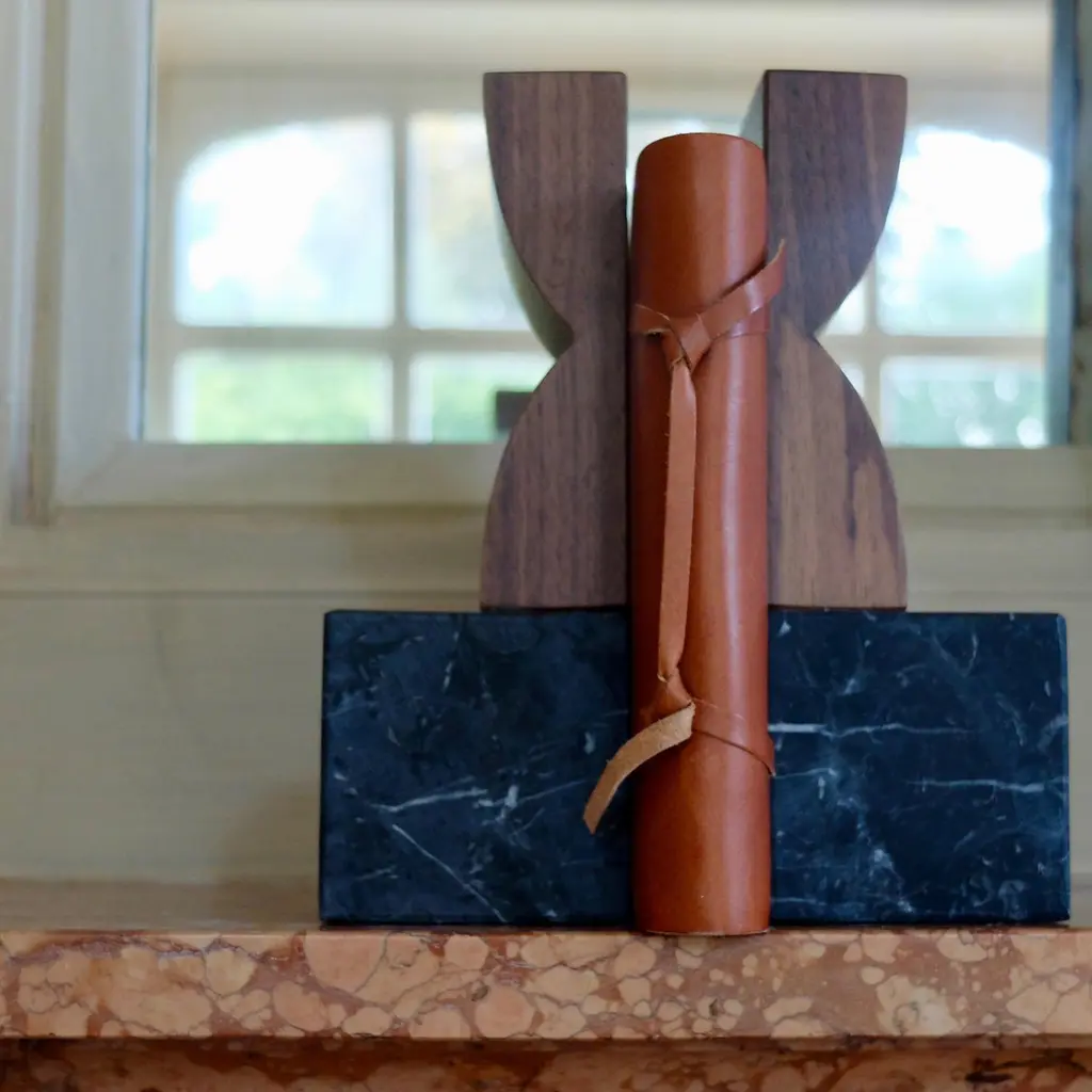 Constantin Bookends, Black Marble/canaletto Walnut Minimalist Design