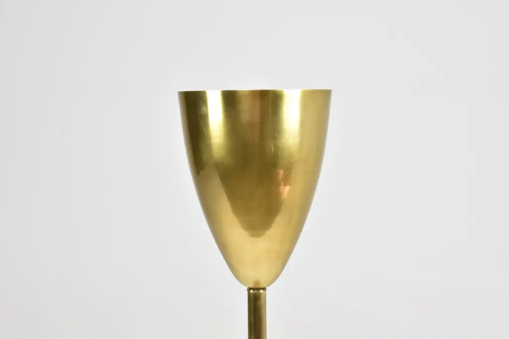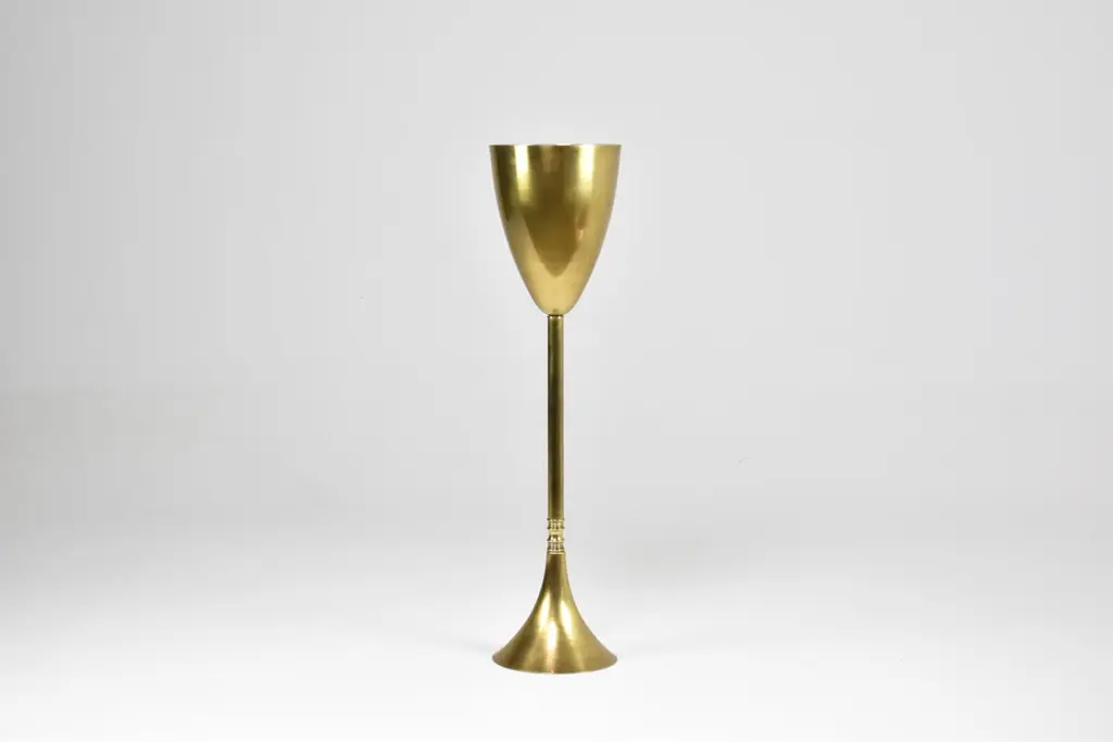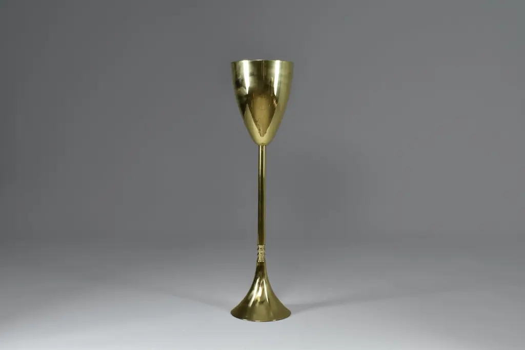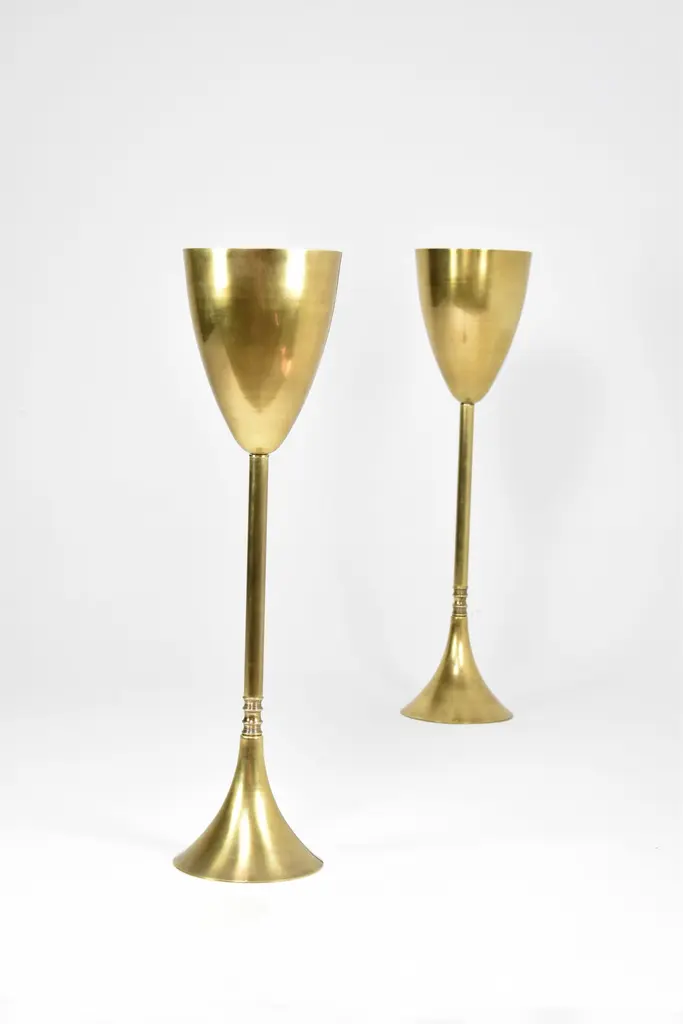 Contemporary made-to-measure handcrafted polished brass champagne or wine bucket stand with skillfully sculpted and handmade hammered details.Designed by Jonathan Amar, handcrafted at his atelier in Rabat. A standout accessory for high-end events, exclusive gatherings, esteemed restaurants, luxury hotels, and upscale dining venues, for individuals who appreciate hosting guests in style, exclusive lounges and bars or as a luxury gift. This champagne bucket stand is meticulously handmade, reflecting the skilled craftsmanship of artisans. As brass is a natural material, slight variations in finish, texture, or color may occur, adding to the unique character and charm of each individual piece. Embracing these subtle differences contributes to the authenticity of this handcrafted item.---------------------We are an exhibition space and an online destination established by the passionate art director behind Jonathan Amar Studio. Our gallery presents a harmonious mix of iconic and engaging 20th century pieces and bespoke contemporary lighting. With a strong focus on Italian mid-century designs, his success strives from sourcing designs with striking shapes, creative techniques and interesting materials that cross the concept of time in the same way a Spirit does. Our 350 square meter workspace includes a luminous gallery, a restoration atelier where our expert artisans in metalwork, woodwork, upholstery, and electrics; restore each piece with the mission to honor a balance between restoration and preservation. There may be light age-related wear but no hard damages or structural issues. Since the launch of our gallery in late 2017, we have exported over 1100 items to buyers in 21 countries located in all four corners of the world from Europe and North America to Asia and Australia. In the United-States alone, we have ensured the delivery of over 150 pieces of all sizes (from massive dining tables to small decorative objects) in 23 states.We take the utmost attention to our packaging by building robust made to measure boxes in our atelier with the aim of providing safe and cost-effective delivery prices for every client. Most deliveries arrive smoothly in less than 8 days. We are located both in Paris and Rabat. FYI the Morocco Free Trade Agreement (MAFTA) went into effect on January 1, 2006. Under the agreement, most Moroccan goods enter the United States duty-free. Contact us for more information