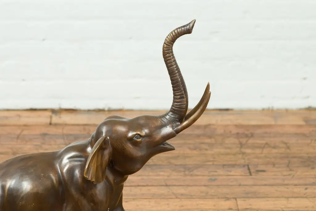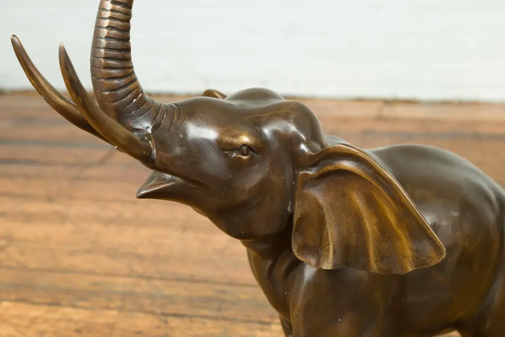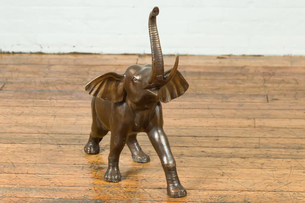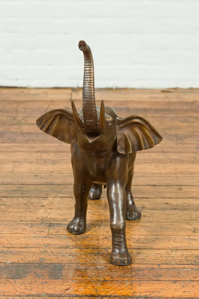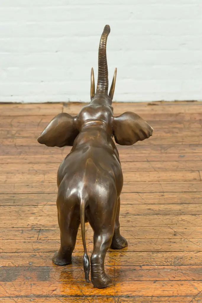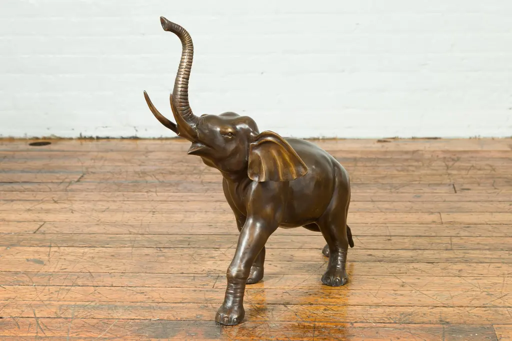 Contemporary Bronze Trumpeting Elephant With Trunk Up Sculpture