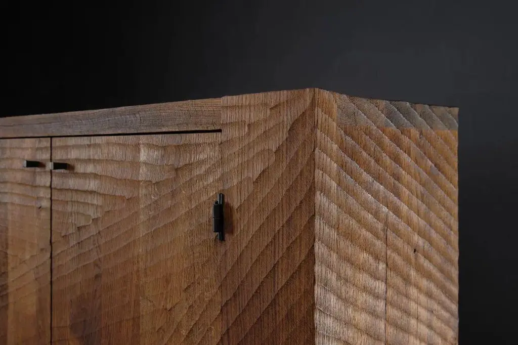 Commode / Chest of Drawers made of solid oak (+ linseed oil)by Denis Milovanov for SOHA ConceptMeasures: 85 x 122 x 56 cm - Custom size on requestSÓHA design studio conceives and produces furniture design and decorative objects in solid oak in an authentic style. Inspiration to create all these items comes from the Russian North aesthetics with its severe nature, log huts black from time and climate and scant patterns. Wood is masterfully hand processed with chainsaw or chisel, whereby producing beautiful surface patterns. The wood is soaked in boiling baths of linseed oil, creating this special patina and making each creation a very unique piece. Reacting with tanning substances under high temperature, oil gives the objects expressive and natural colours, from light brown to charcoal-black. SÓHA offers a vast array of neo-primitivist interior objects. Our kitchen utensil, wall panels, sculptures and furniture solutions are executed in one unique style and will organically fit into the interior of your home. Each piece is one-of-a-kind handmade product.Unique piece made to order.
