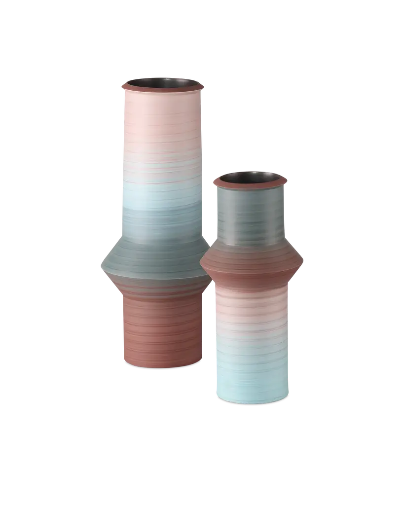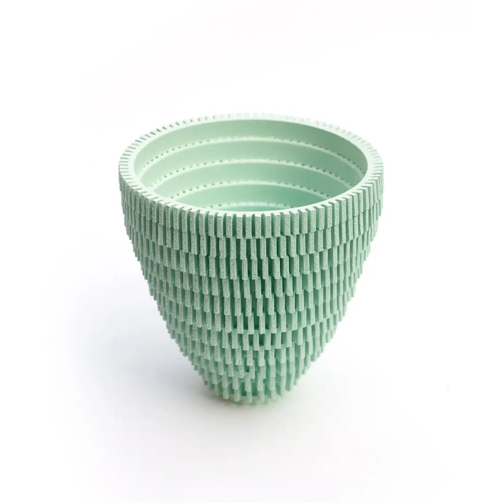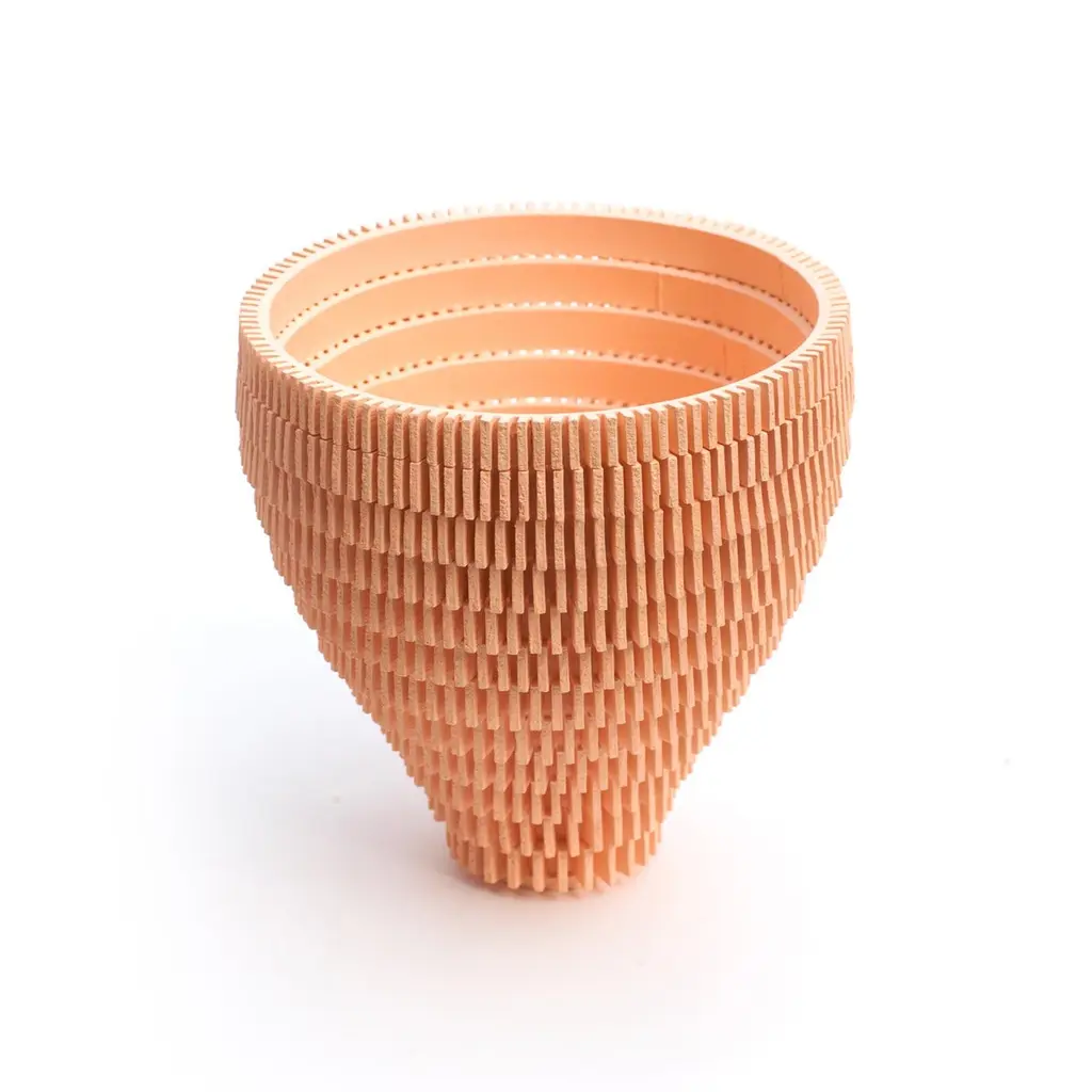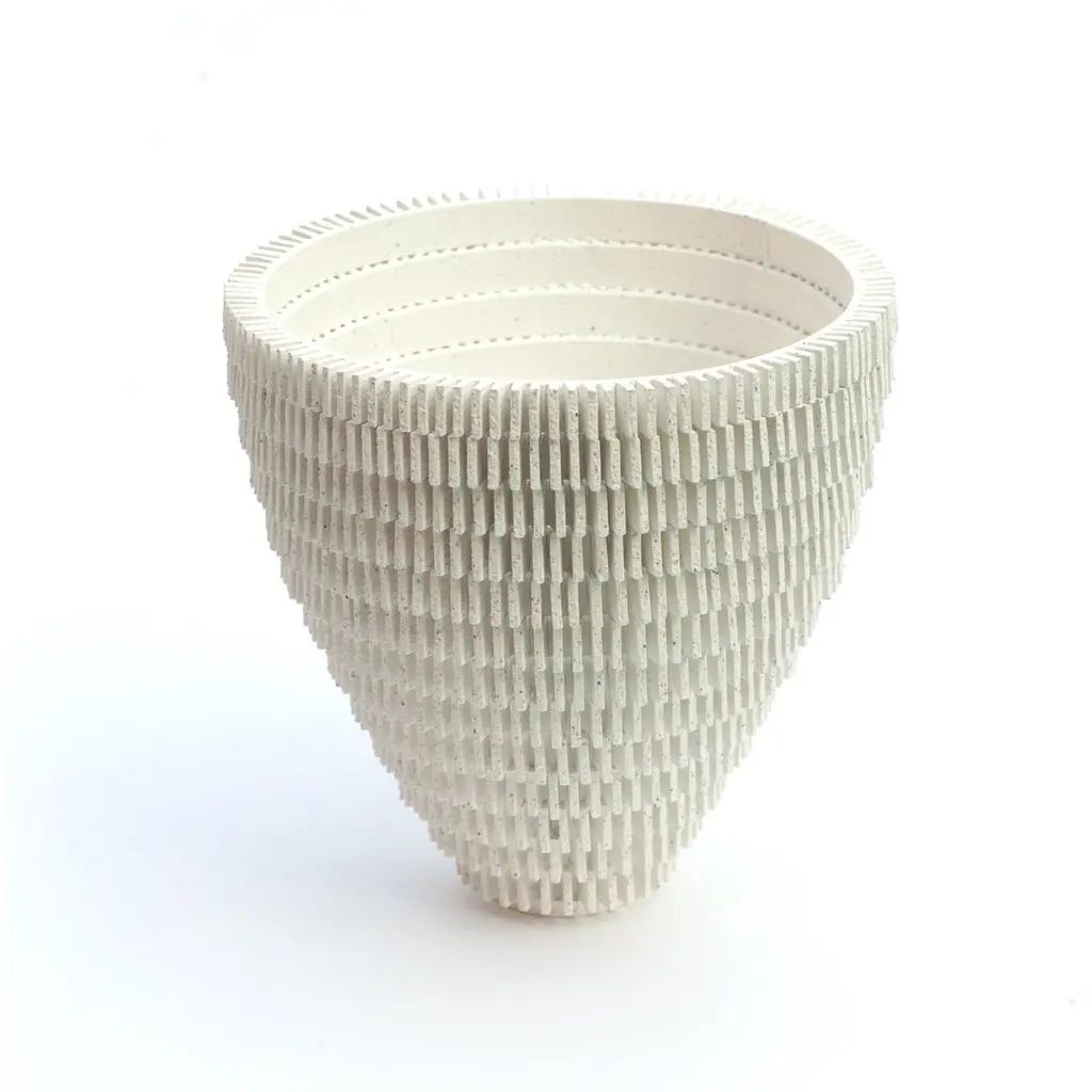 Waiting for Godot 209360-210242, 2018 (Ceramic; Unique; C1: Terracotta 9 in. h. x 9 in. d., C2. White 9.9 in. h x 9.9 in. d., C3. Mint 8.6 in. h. x 8.6 in. d.)The inspiration for Bae Sejin’s intriguing ceramic designs is the play Waiting for Godot by the Irish avant-garde novelist Samuel Beckett. Sejin described his vision: “The lapse of time involves duration, repetition, transformation, and circulation. Working with clay as a natural material is unifying the time of nature and human existence. Samuel Beckett revealed the passage of time in nature in his play Waiting for Godot, in which the two main characters are repeatedly waiting for Godot who never arrives. Beckett’s play becomes the motivation for my work”.The elegant artistic expression of Bae’s work derives from the inventive process of handbuilding his sculptures from hundreds of small ceramic elements, each of them numbered by the designer to document the lapse of time.Bae Sejin was born in South Korea in 1981 and currently lives and works in Seoul. He trained at the National University of Seoul and is the recipient of several prestigious awards. In 2017 he was a LOEWE Craft prize finalist.