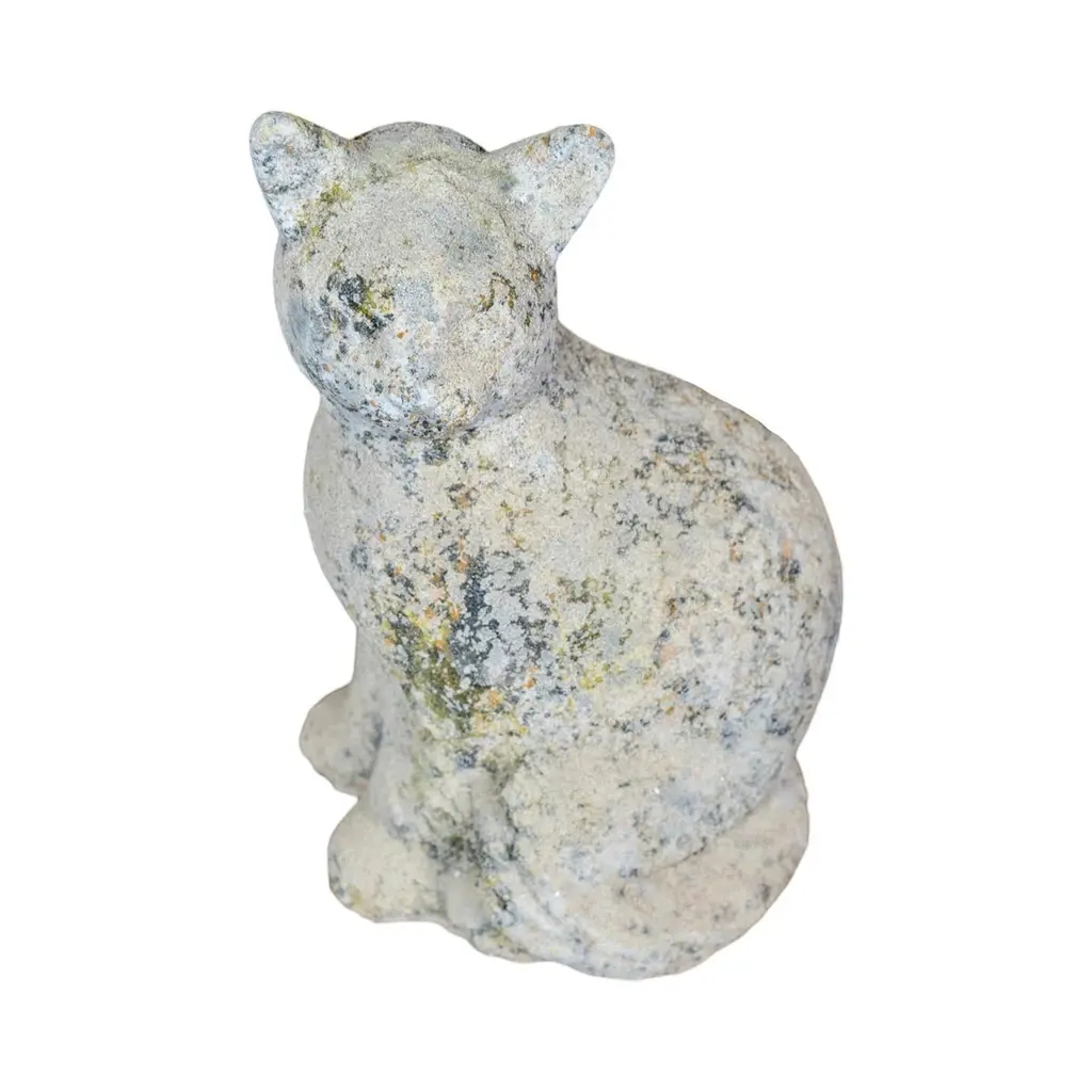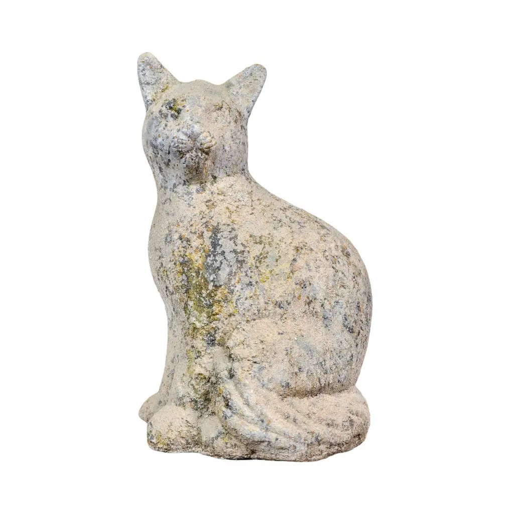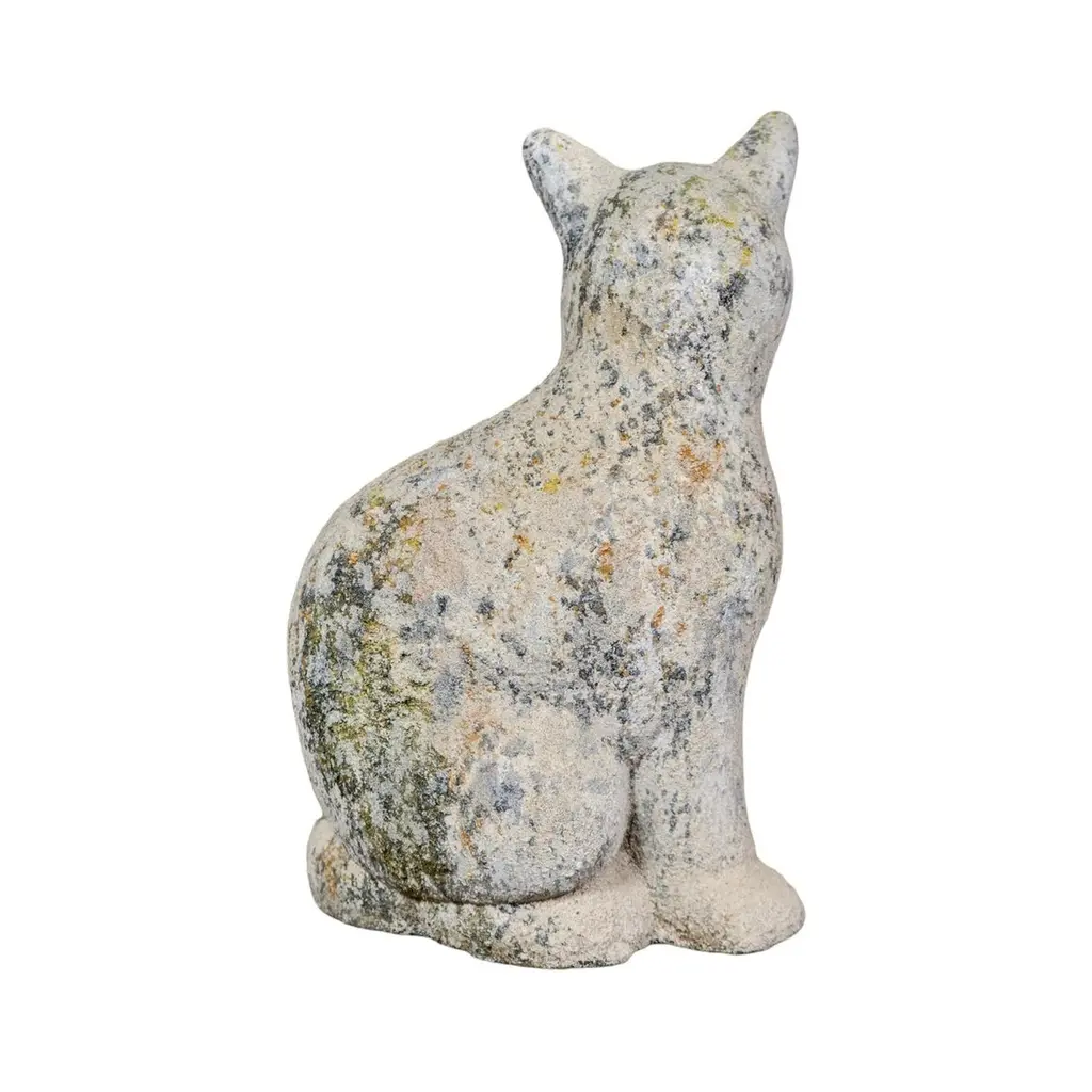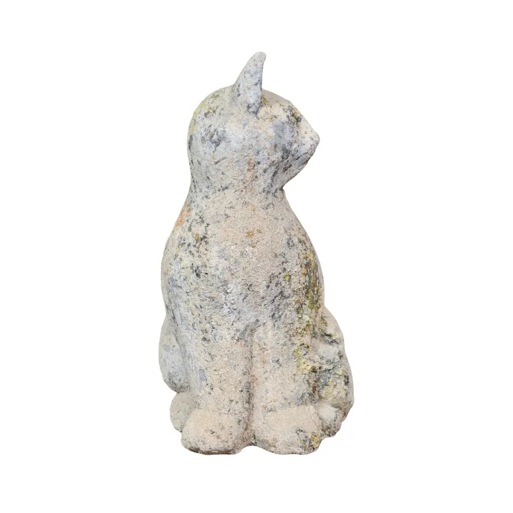A contemporary cat sculpture from France, crafted from a granite composite that offers durability and timeless charm. Perfectly suited for enhancing any outdoor space.
