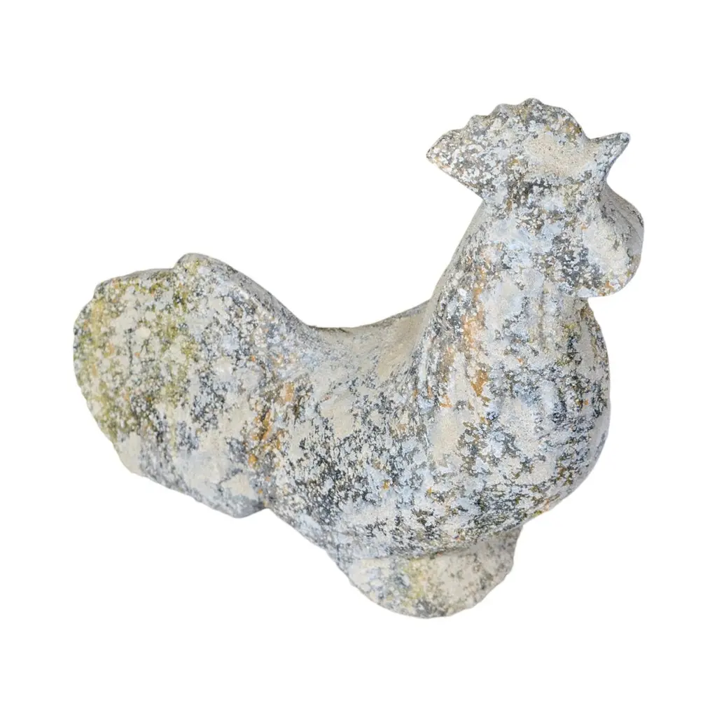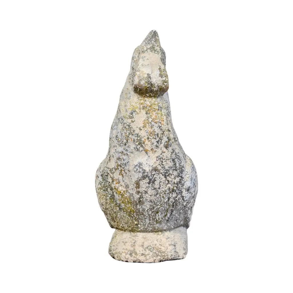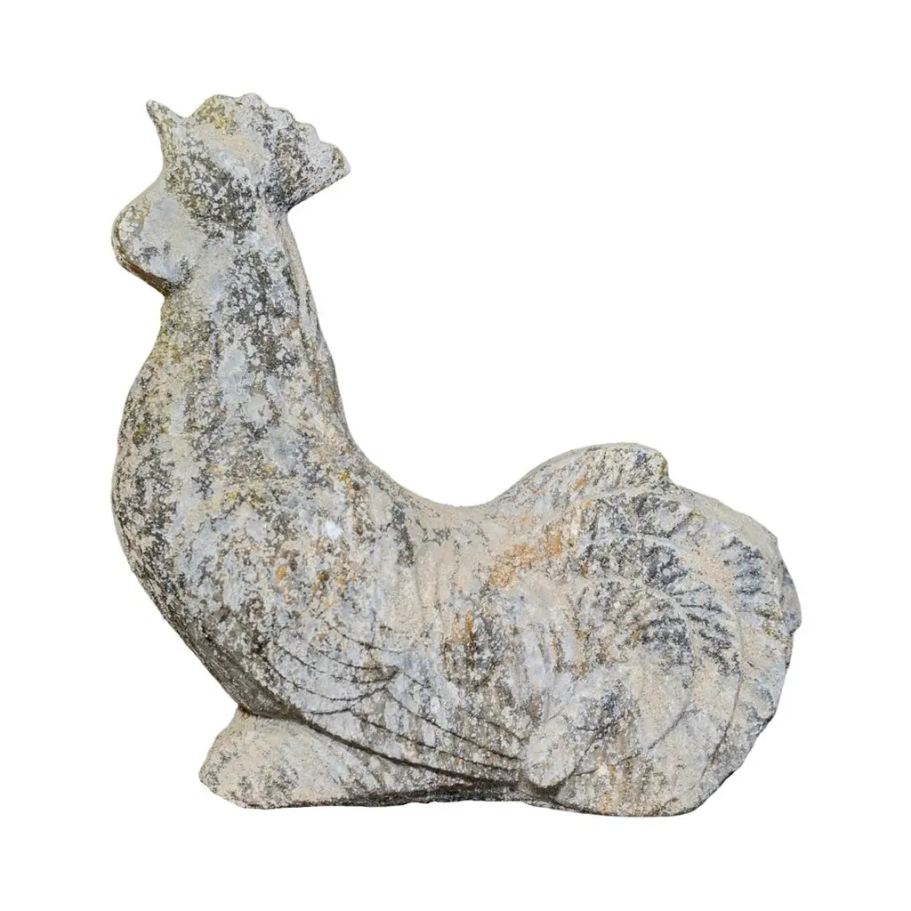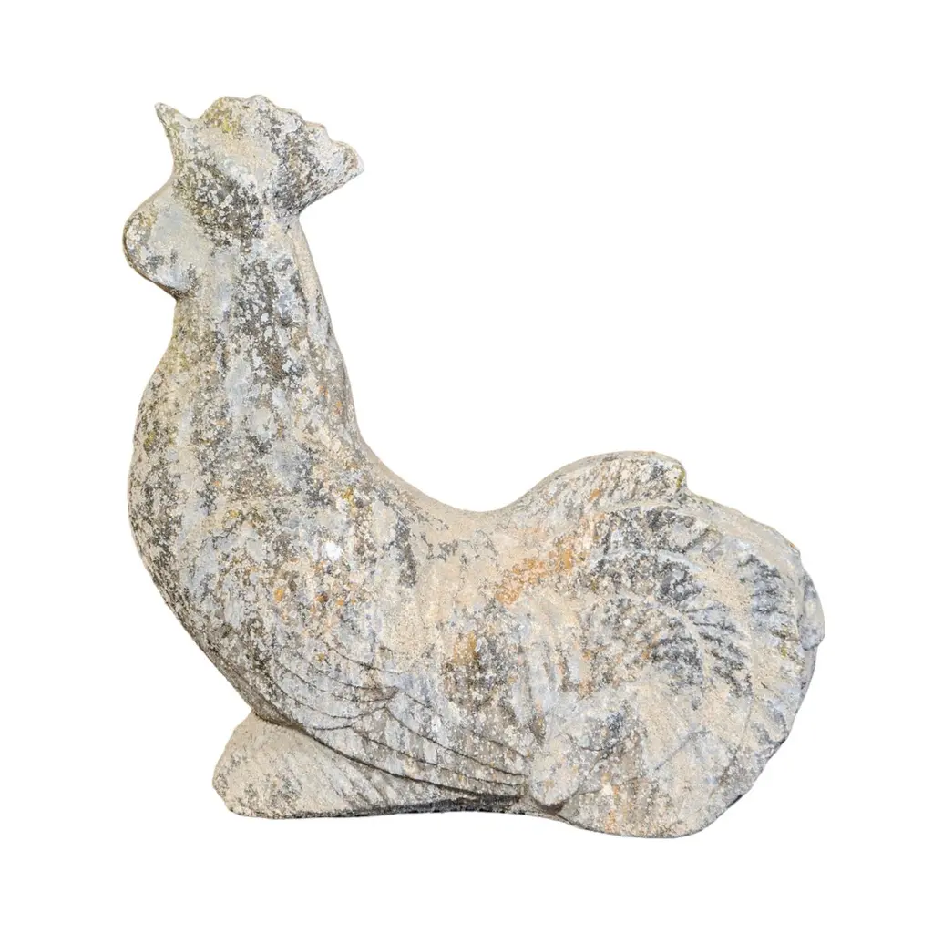 A contemporary rooster sculpture from France, crafted from a granite composite that offers a naturally weathered finish. A striking accent, perfect for adding character to any outdoor space.