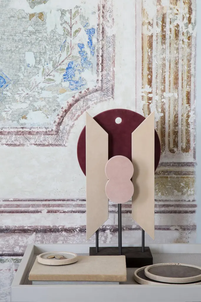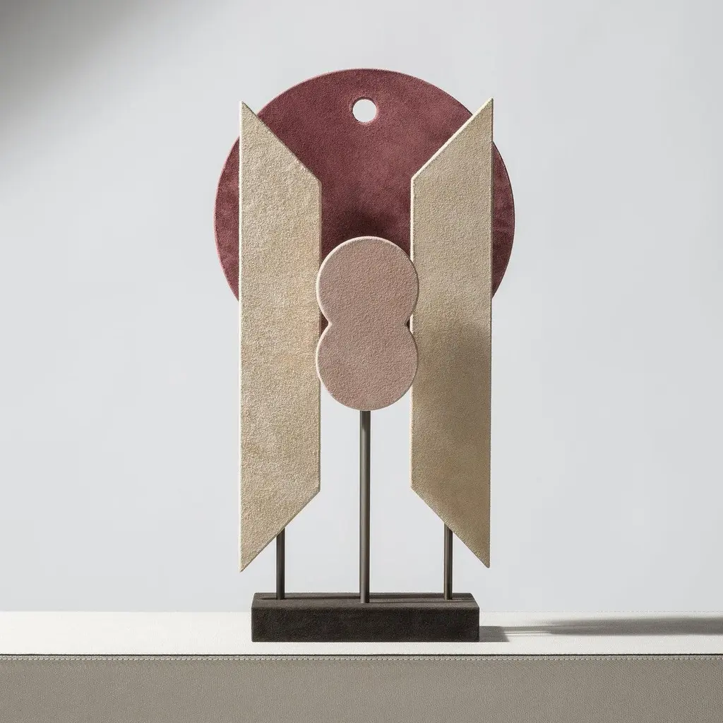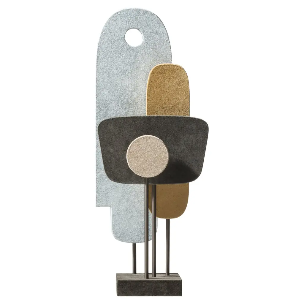 Contemporary leather sculpture - Tabou 2 by Stephane Parmentier for Giobagnara.A mix of space-age design and tribal art, these contemporary totems are great decorative pieces able to create a connection between abstraction and figuration.Design: Stéphane ParmentierMaterial: Suede Leather, BronzeDimensions (in): W 10.83 x D 5.91 x H 20.28Dimensions (cm): W 27.5 x D 15 x H 51.5Made by hand, in Italy.This item is made to order.