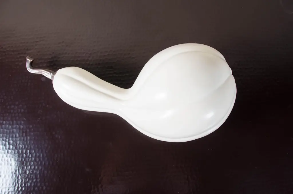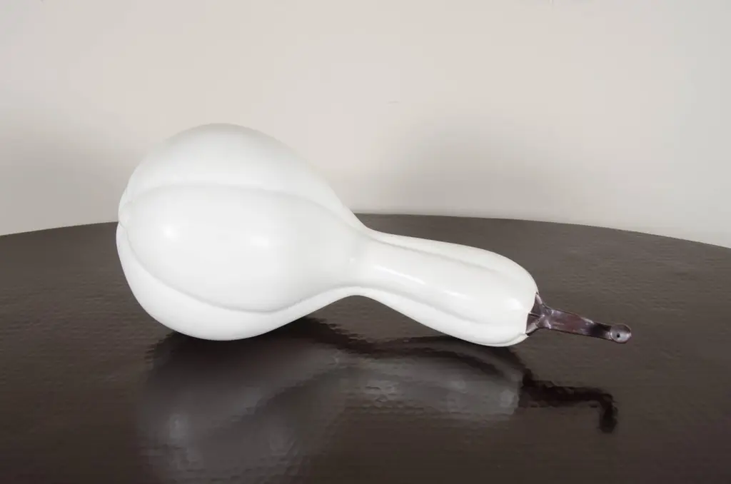 Contemporary Long Han Gourd Sculpture In Cream Lacquer And Copper By Robert Kuo