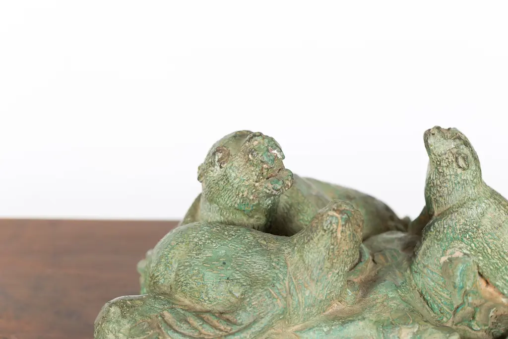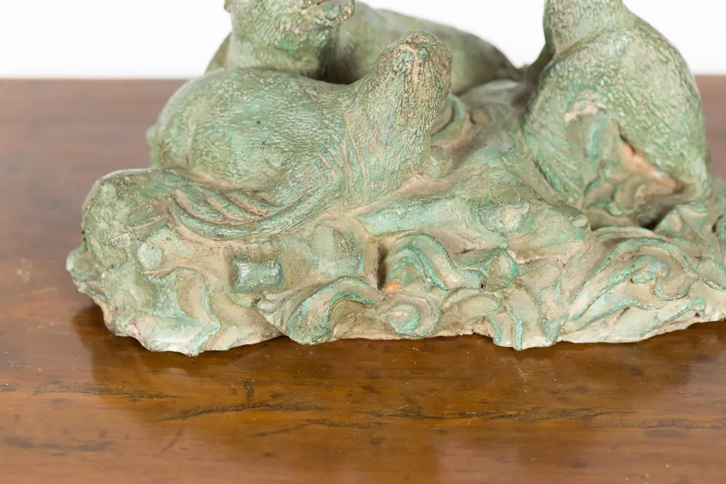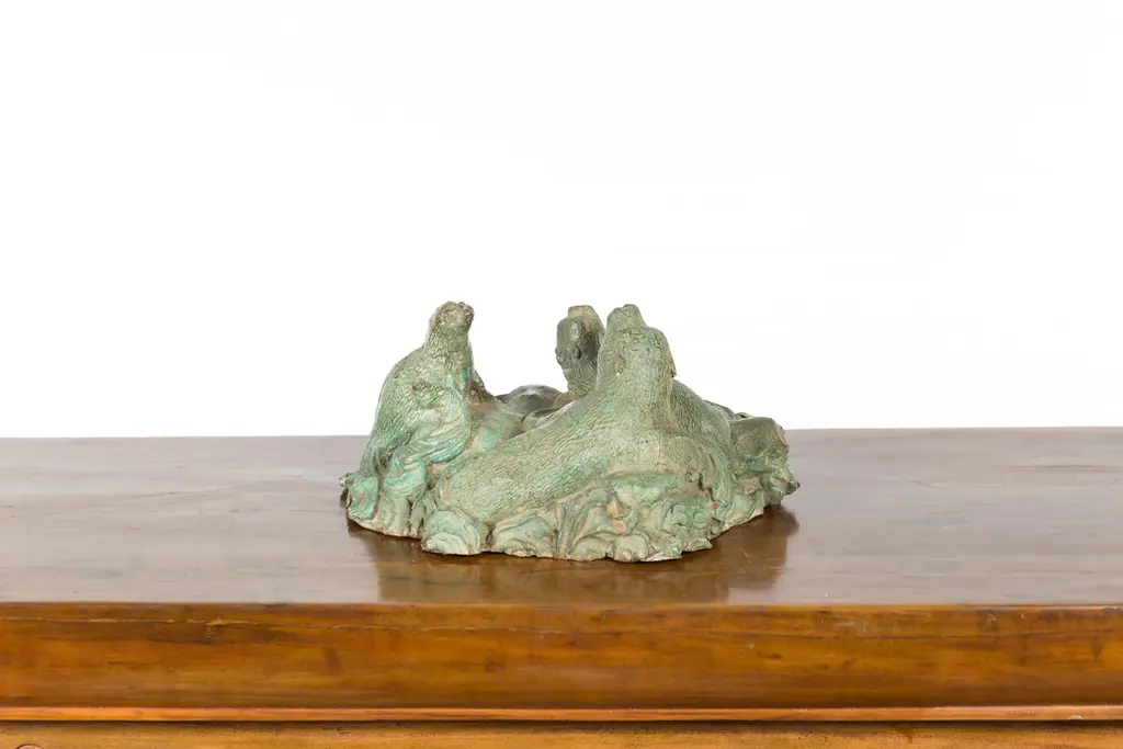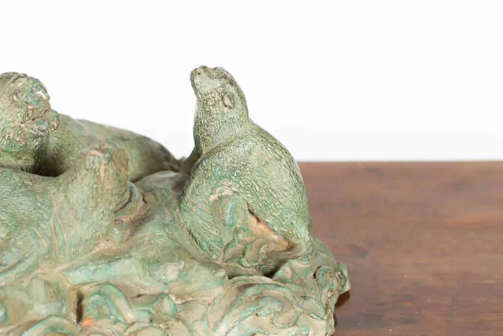 Contemporary Lost Wax Cast Bronze Sea Lion Sculpted Group With Verde Patina