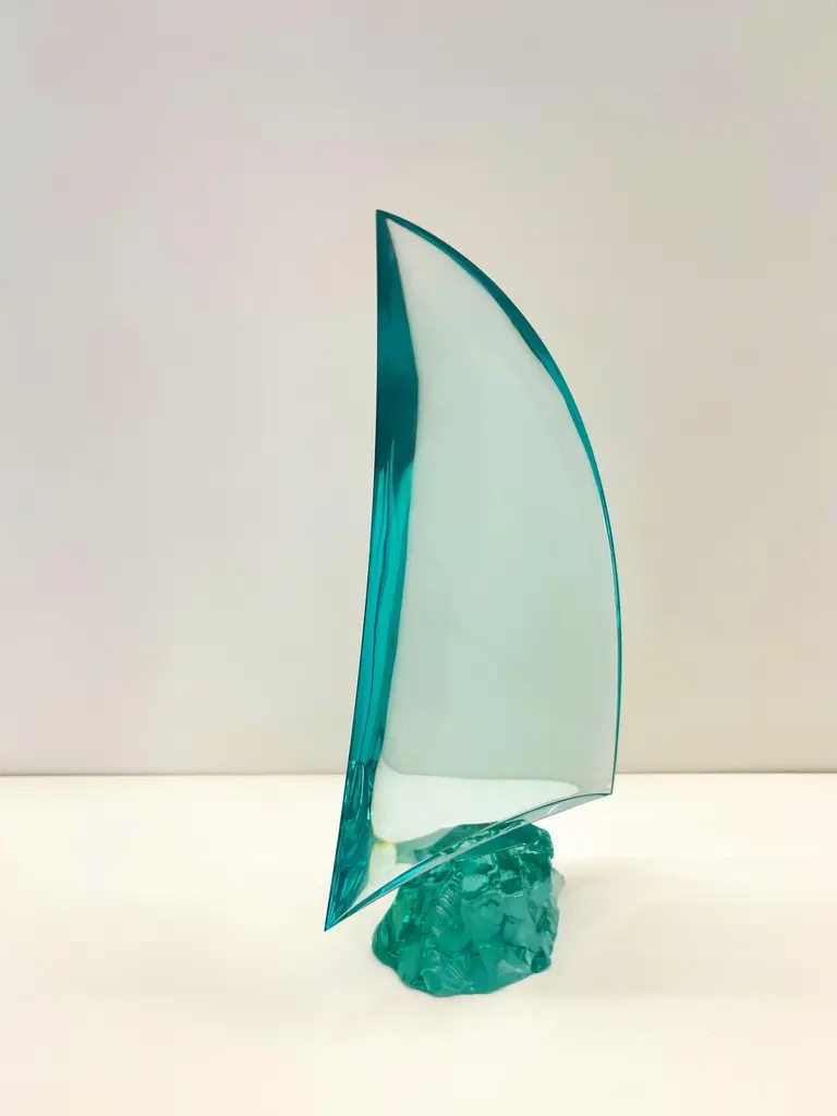 Contemporary 'Sail' Handmade Aquamarine Crystal Sculpture By Ghirò Studio