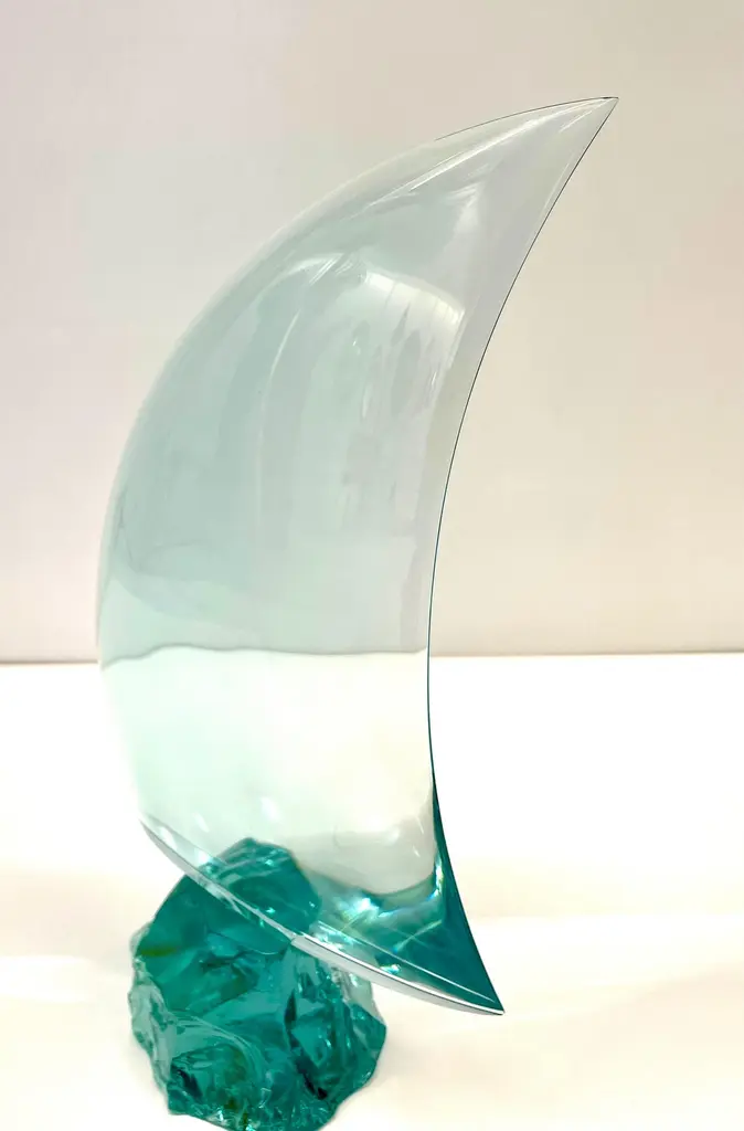 2021 Collection of decorative objects signed by Ghirò Studio (Milan).The natural crystal has high transparencies with aquamarine reflections, it has been curved and handmade to represent a sail. Every sail is a real artistic sculpture. Each crystal is exclusive and unique as it has been entirely handcrafted starting from a block of crystal. This makes impossible to create two perfectly identical. The wind inflated sail is a symbol of travel, discovering yourself as well as the power of action that allows you to reach your goals. It is perfect gift to wish a life full of satisfaction or right detail to complete the environment with an object of timeless charm.This object is new and in excellent condition.One available immediately.Every imperfection is to be considered a value and not a defect, a guarantee of the extreme naturalness and craftsmanship of our product.These items are handmade and will not be all exactly the same.