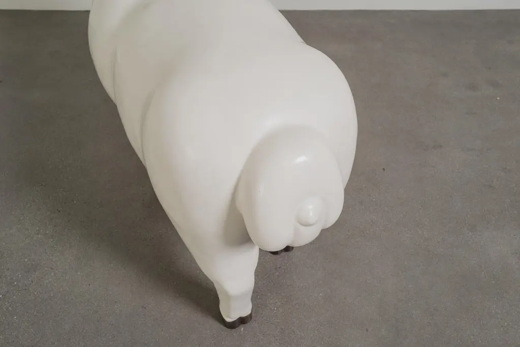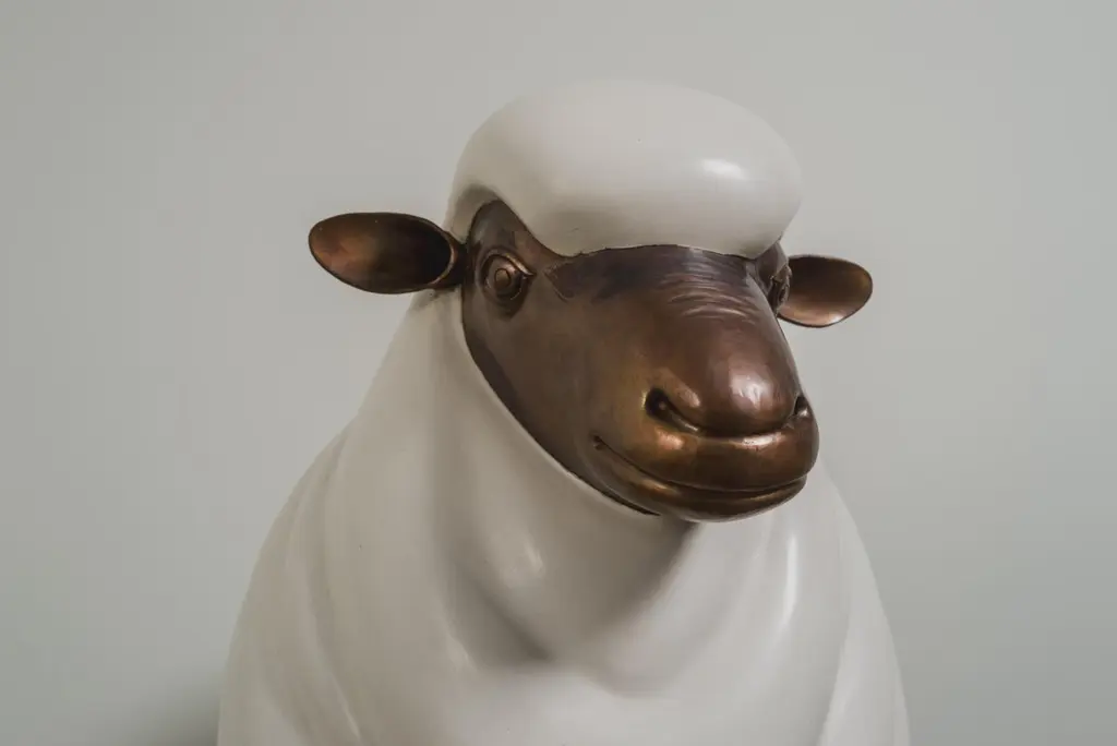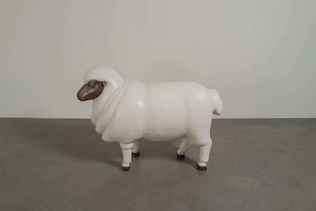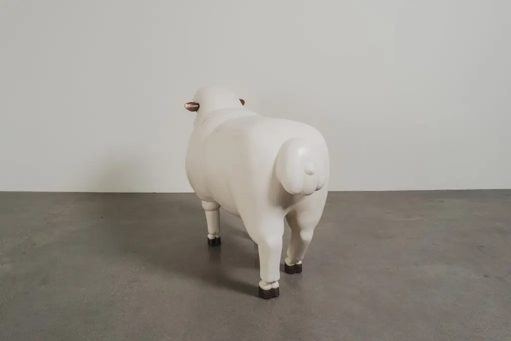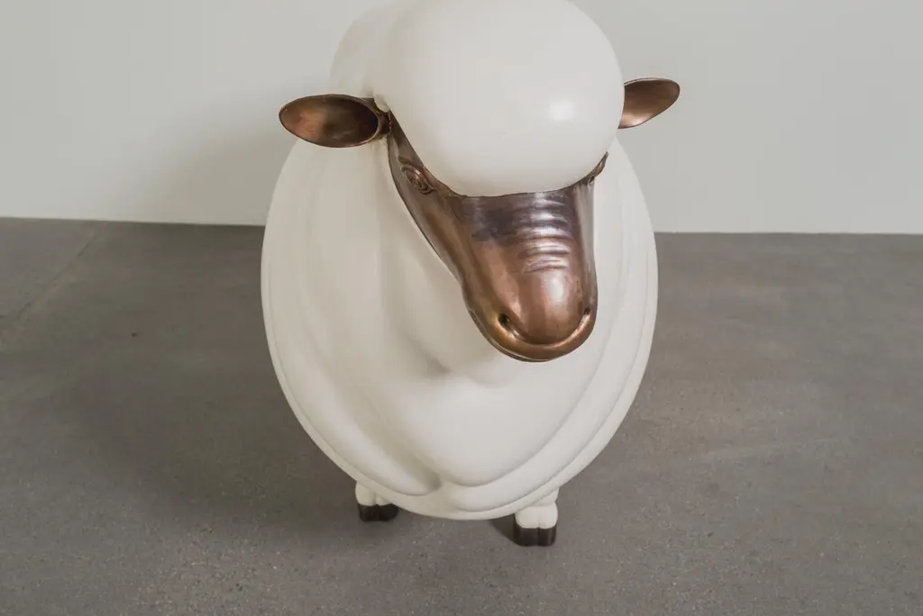 Contemporary Sheep Sculpture (Female) In Cream Lacquer And Copper By Robert Kuo