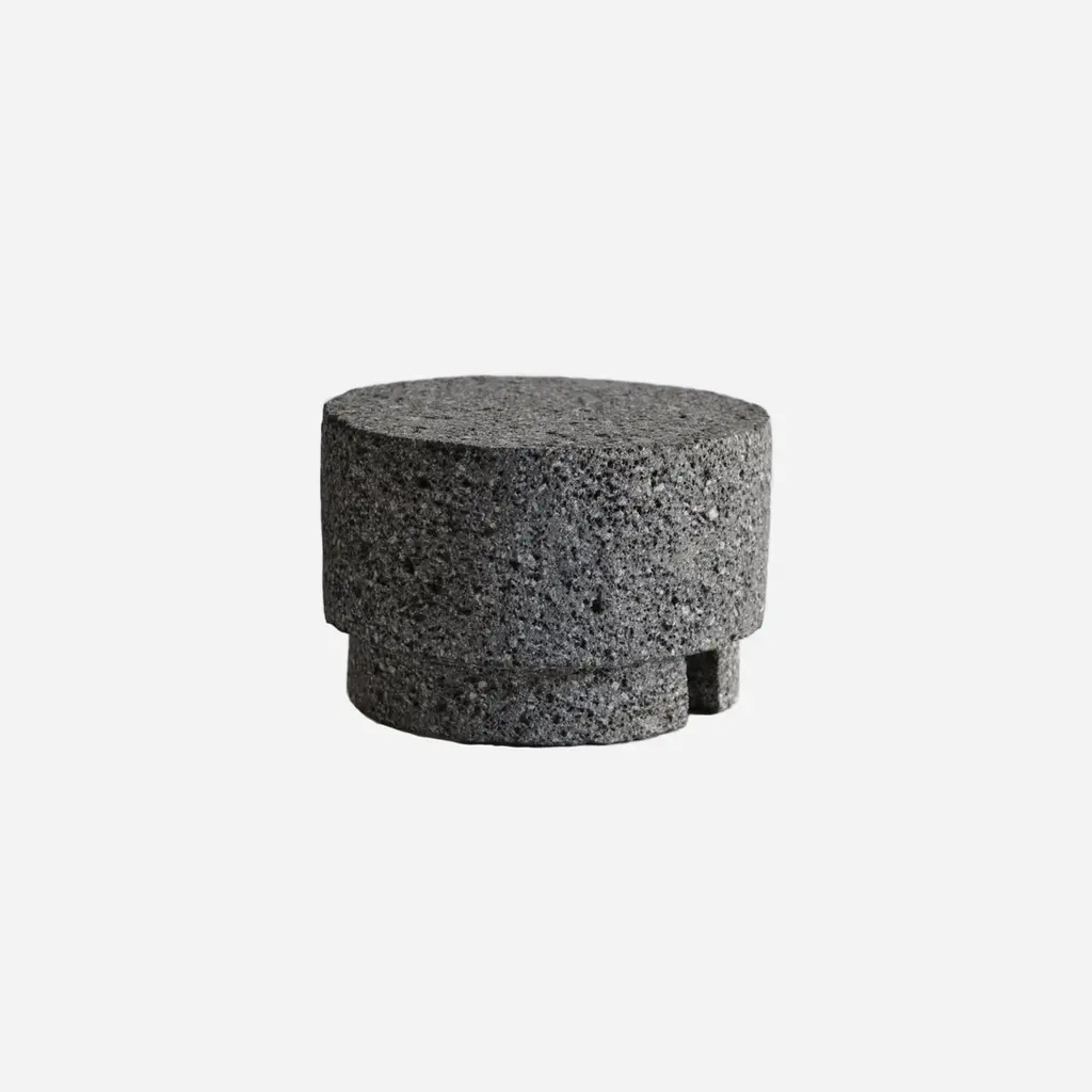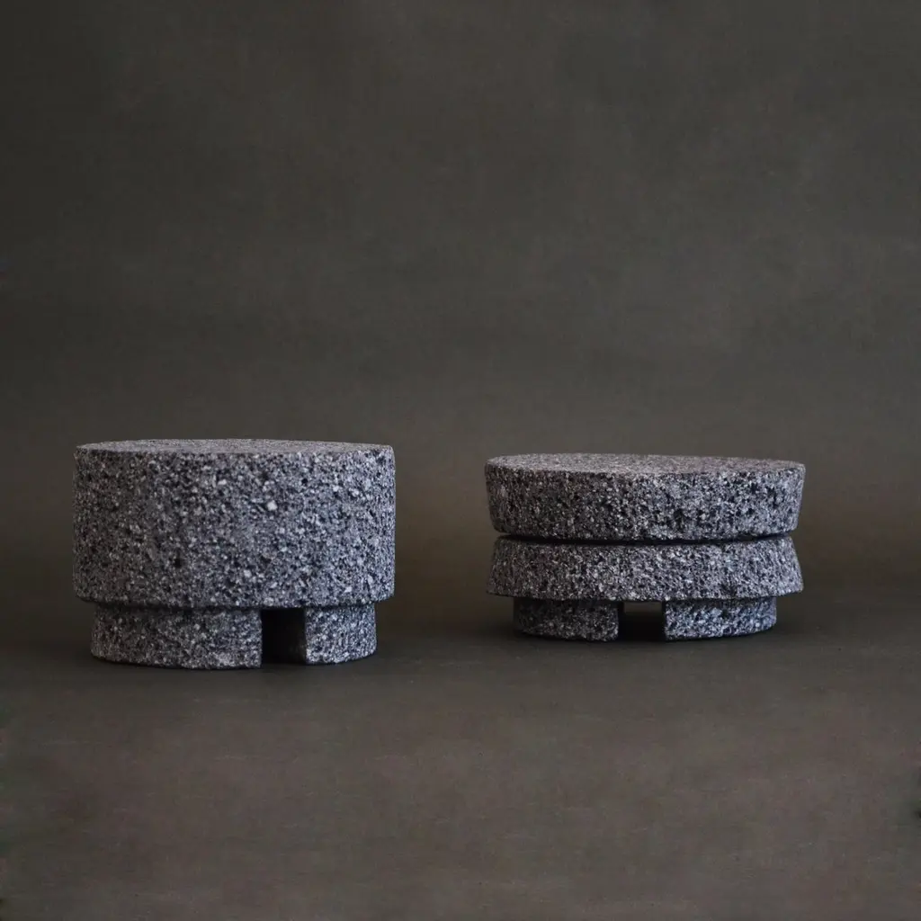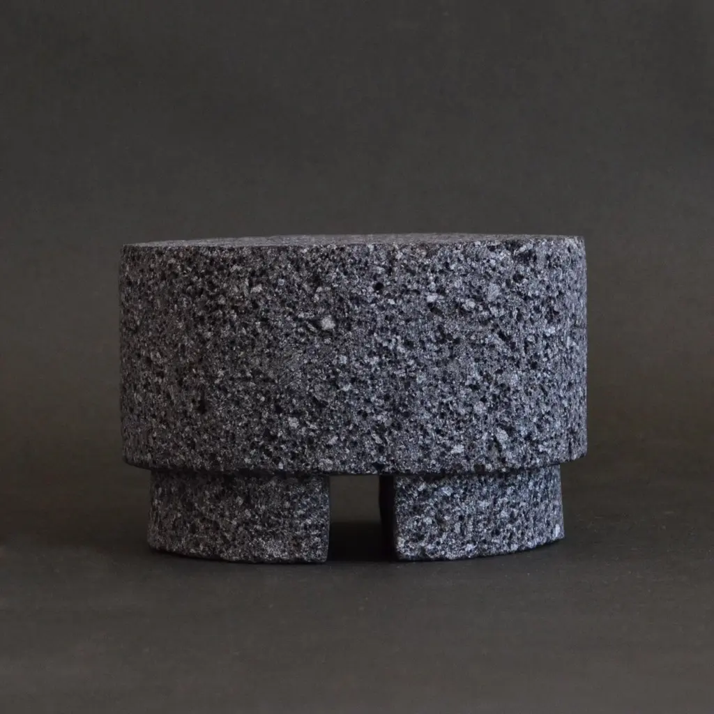 The collection of temple sculptures are inspired by the postclassic period of pre-Hispanic Mesoamerican ceremonial architecture from the center and south of what today makes up the country of Mexico.Temple central is a 3-piece detachable sculpture.Crafted and finished on the shores of Lake Cajititlán, Jalisco, Mexico. This area is recognized for its extensive amount of basalt stone traditionally used to make molcajetes. This type of stone is recolected manually and is a material known for its hardness and aesthetic appeal and texture. Various pre-Hispanic sculptures and archaeological objects have been made with this material in the past.The central sculpture is made with two processes, initially the stone is cut with an angle grinder and it is forged by hand with a chisel giving the initial shape, then the angle grinder is used again to give the finishes. Doing a manual mixed process. This production technique creates unique silhouettes and ensures that each piece is truly one of a kind.While designed as a base, the piece also serves as a stand-alone display object. Its abstract minimal design makes it a focal point in any setting, showcasing its exquisite craftsmanship. Each piece is produced in small batches, resulting in slight variations between pieces. Such features may include small deformities, scratches, or pitting on the surface, adding to the unique charm of each one's archeological appearance.The Temple Central is not just a decorative item but a work of art. Its minimalist, abstract and geometric language make it a perfect choice for design professionals and architects looking to introduce a piece with historical references and an evolving aesthetic into their designs.