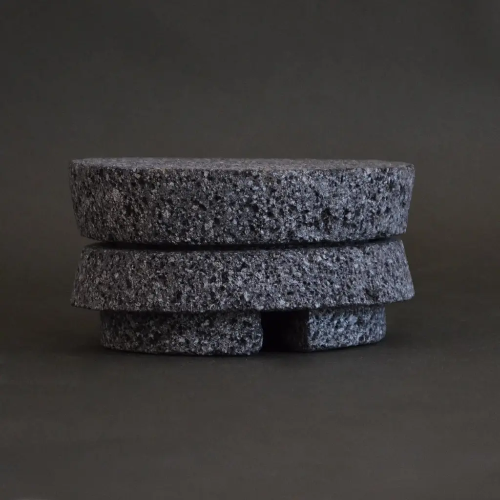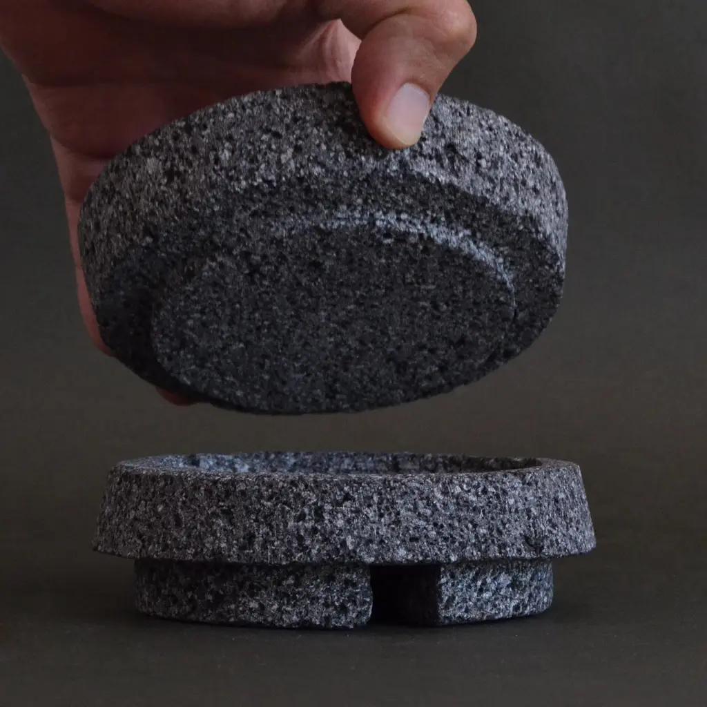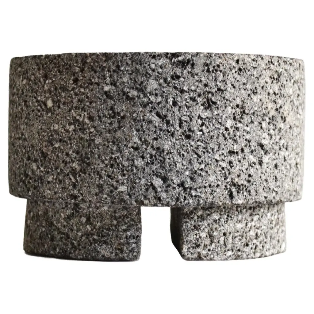 The collection of temple sculptures are inspired by the postclassic period of pre-Hispanic Mesoamerican ceremonial architecture from the center and south of what today makes up the country of Mexico.Temple central is a 3-piece detachable sculpture.Crafted and finished on the shores of Lake Cajititlán, Jalisco, Mexico. This area is recognized for its extensive amount of basalt stone traditionally used to make molcajetes. This type of stone is recolected manually and is a material known for its hardness and aesthetic appeal and texture. Various pre-Hispanic sculptures and archaeological objects have been made with this material in the past.The central sculpture is made with two processes, initially the stone is cut with an angle grinder and it is forged by hand with a chisel giving the initial shape, then the angle grinder is used again to give the finishes. Doing a manual mixed process. This production technique creates unique silhouettes and ensures that each piece is truly one of a kind.While designed as a base, the piece also serves as a stand-alone display object. Its abstract minimal design makes it a focal point in any setting, showcasing its exquisite craftsmanship. Each piece is produced in small batches, resulting in slight variations between pieces. Such features may include small deformities, scratches, or pitting on the surface, adding to the unique charm of each one's archeological appearance.The Temple Central is not just a decorative item but a work of art. Its minimalist, abstract and geometric language make it a perfect choice for design professionals and architects looking to introduce a piece with historical references and an evolving aesthetic into their designs.