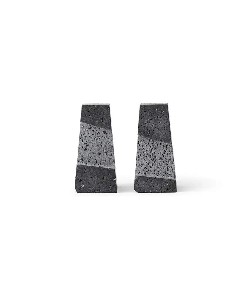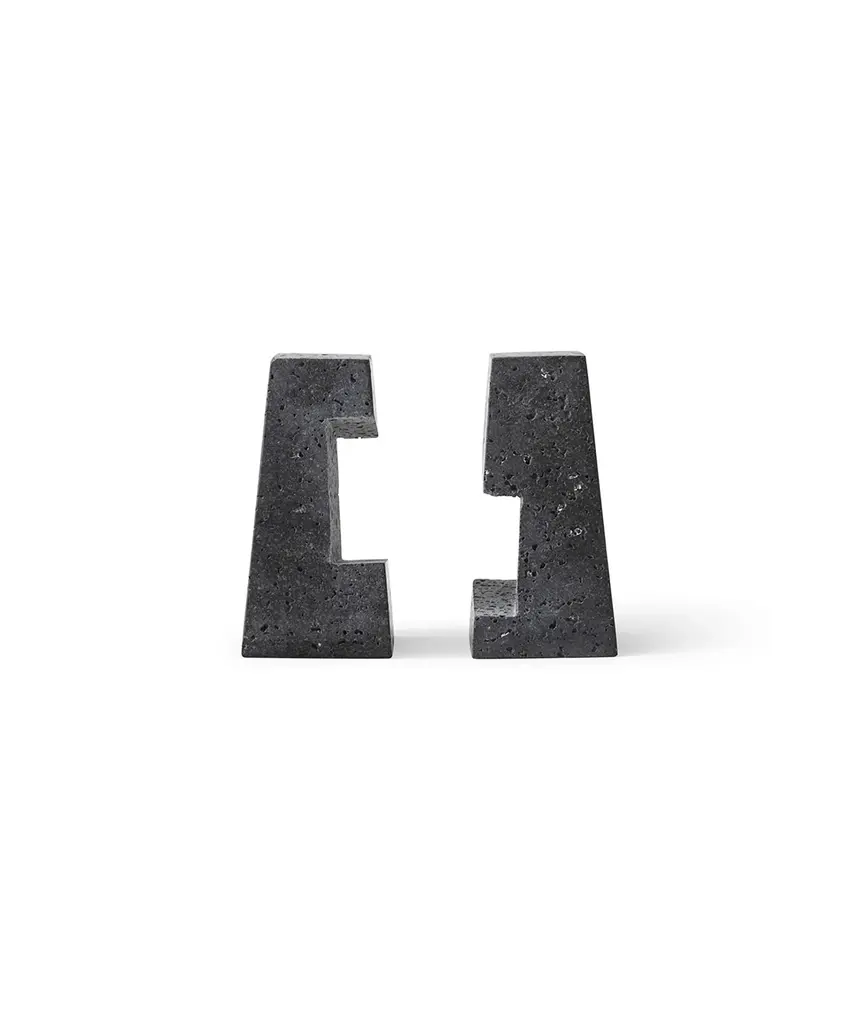 Designed to neatly hold books in place, the abstract forms of the Converge Bookends are shaped from lava stone a dark and porous material with a textured surface. Use as intended, one at either side of a line of books, or interlock together to create a sculpture that delights with its intriguing shape and touch.Designed by Colin King Studio Llc for Audo Copenhagen North America.
