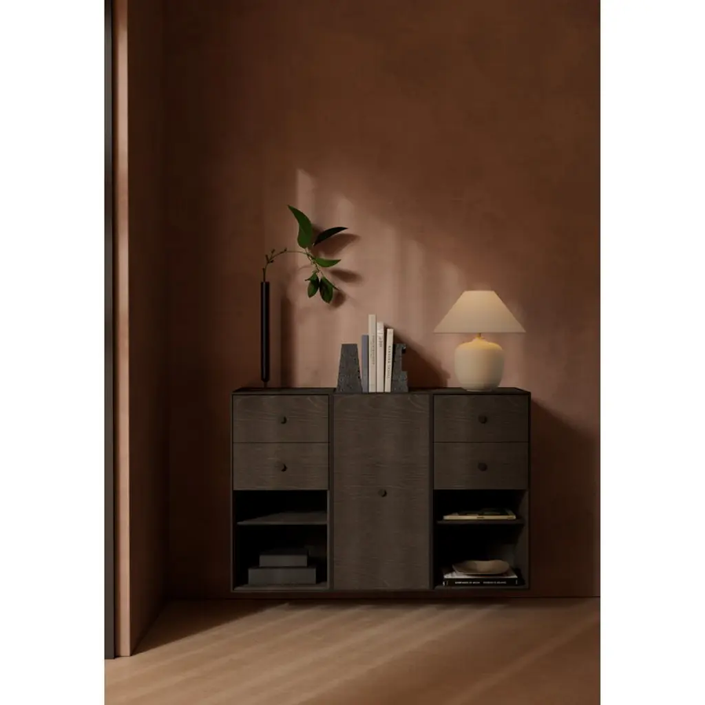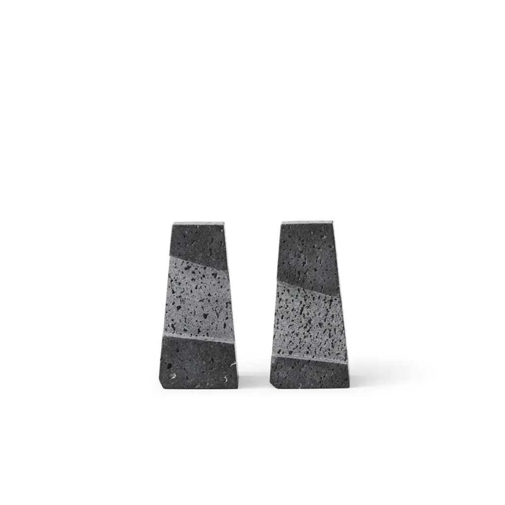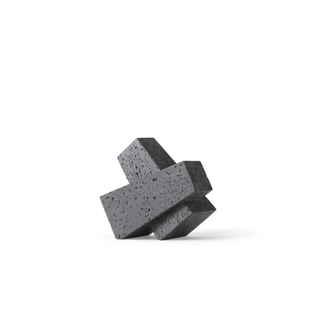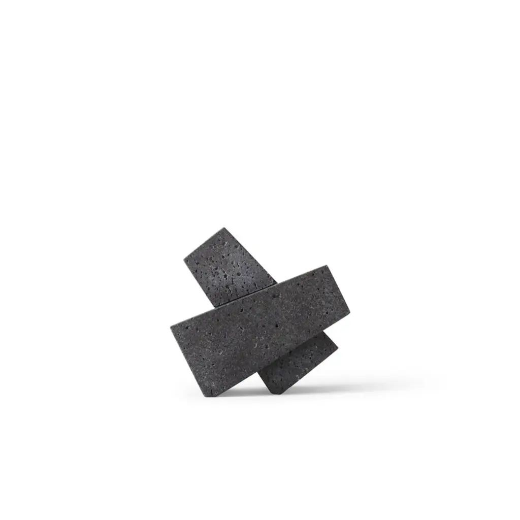 Audo Copenhagen's Converge bookend is made of lava stone with a dark, irregular surface that adds a unique texture to the beautiful ornament. The bookend consists of two abstract parts that can be used in the original purpose to support the books on the shelf in straight rows, or they can be joined together to create an original sculpture that will delight on a coffee table, shelf or windowsill. The Converge bookend is a part of Audo Copenhagen's Colin King collection, with dramatic and decorative objects that celebrate the beauty of natural materials and shapes, bringing a touch of elegance to any space.