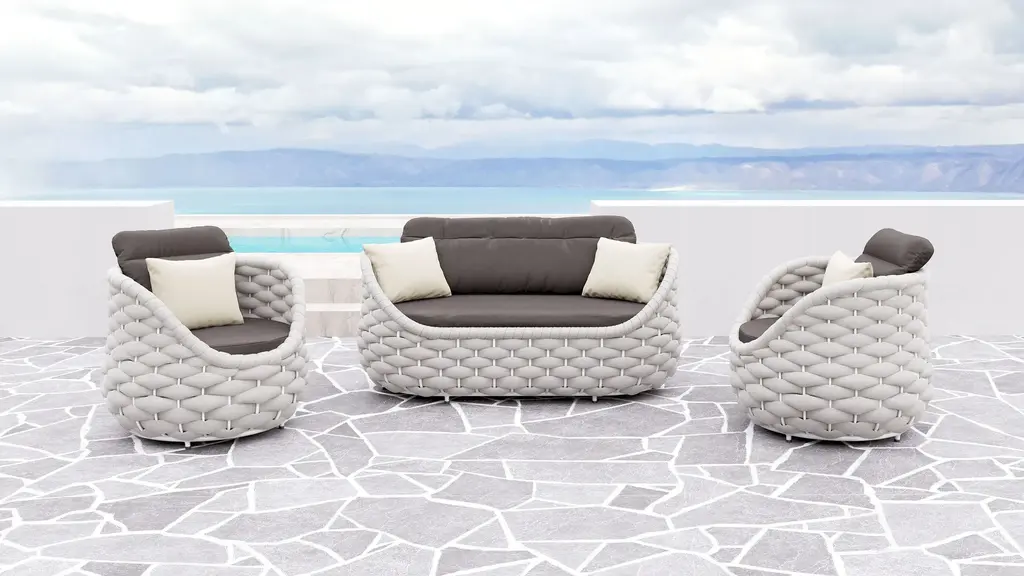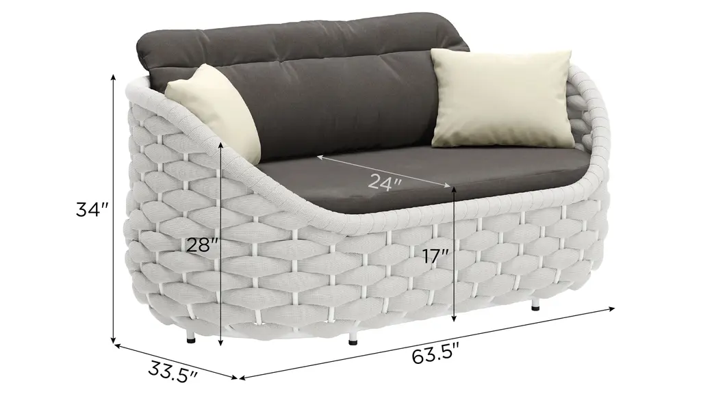 Crafted with a robust aluminum frame and adorned in olefin fabric, the Coral Reef Loveseat boasts a sleek, contemporary design suitable for various settings, from a chic condo rooftop deck to a tranquil Airbnb oasis or a boutique hotel.