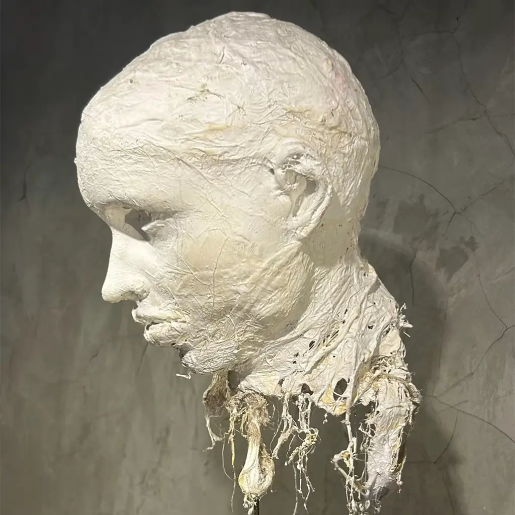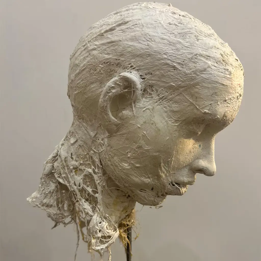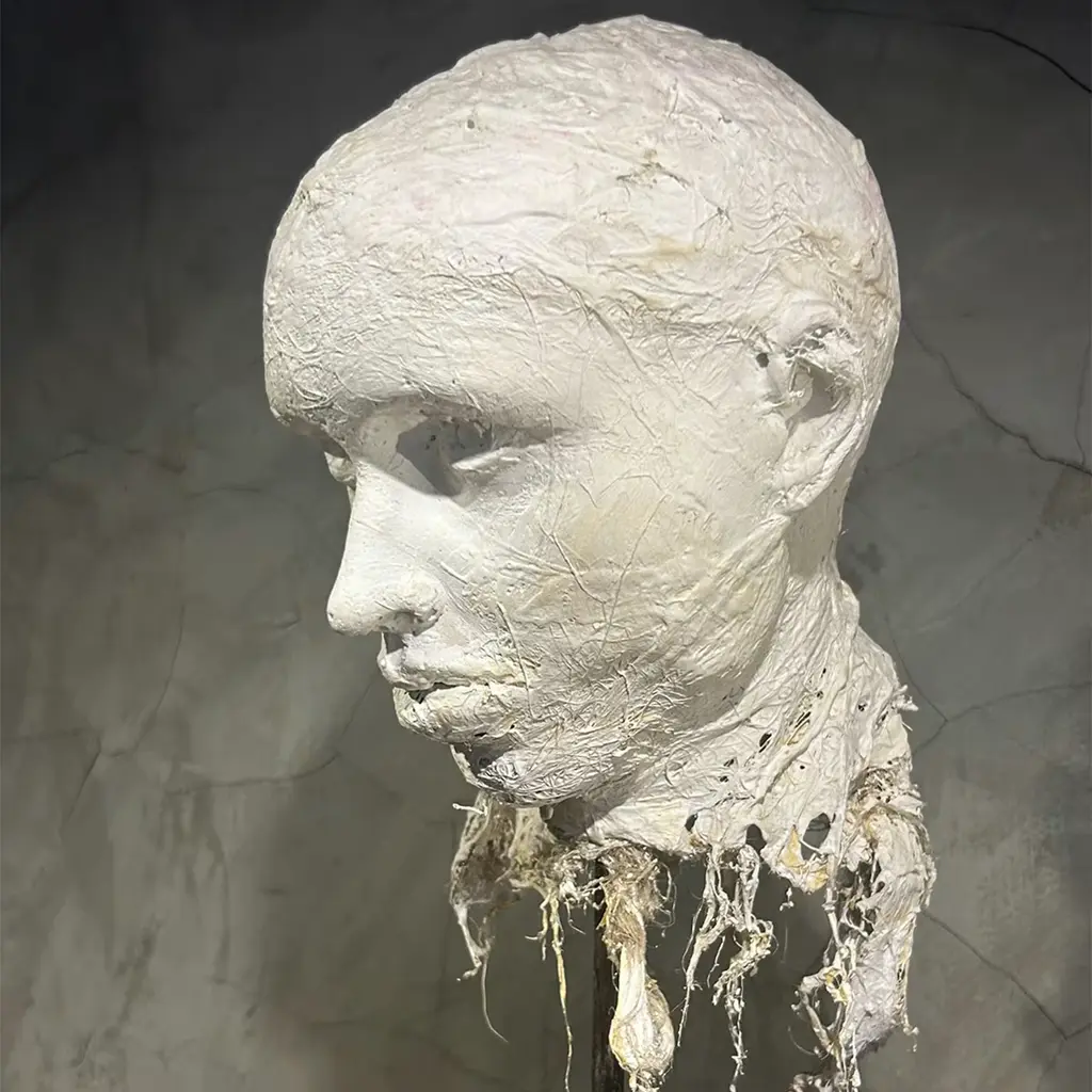 Inspired by the eponymous book by philosopher Jean-Luc Nancy, this one-of-a-kind head crafted with gypsum and vegetal fibers is an invitation to reflect on the morphological similarities between humankind and nature. The sculpture appeared in multiple art publications and was exhibited at the Mad Museum in Florence.