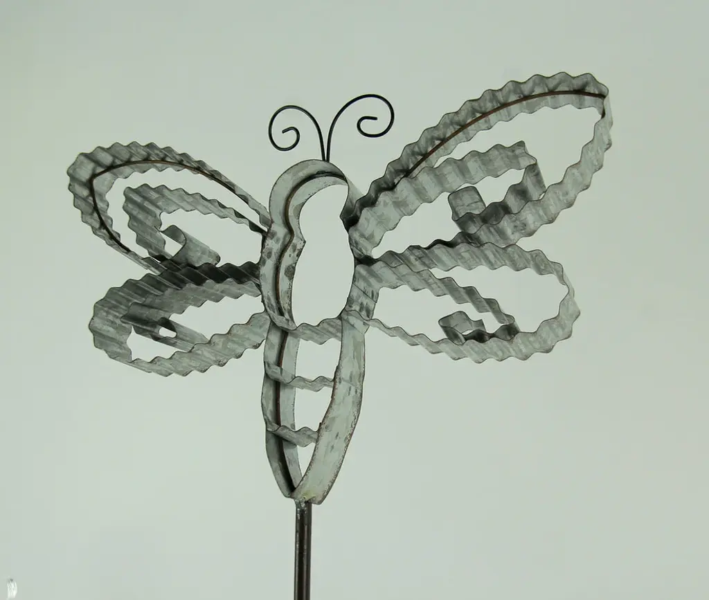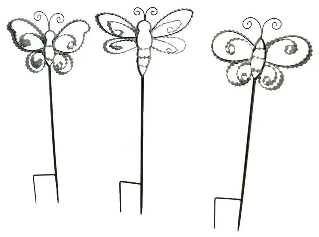 OVERALL SIZE - 27 Inches High, 10.5 Inches Long, 2 Inches WideMade of Weather Resistant Metal With a Step-On Stake that Anchors it Into the GroundGalvanized Finish and Corrugated Texture Gives Them Whimsical Character Full of Contemporary Rustic CharmGreat Decor Pieces That Add a Fun and Stylish Look to Any Decor EnvironmentA Playful Addition that Enhances the Look of Any Outdoor SpaceIf you are looking for something fun and creative to add to your yard or garden, this set of metal stakes is just what you are searching for. Each stake is designed in a butterfly shape made of corrugated metal with a galvanized finish. The step-on stake secures them into the ground, or you can add them to large planters to bring some rustic character to the patio. Arrange this set of 27-inch high, 10.5-inch long, 2-inch wide butterfly garden stake sculptures anywhere around the exterior of your home, they are playful addition sure to enhance any outdoor space.