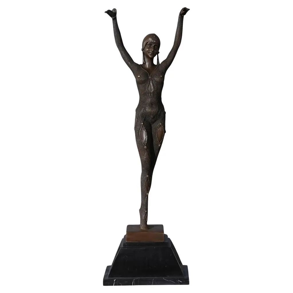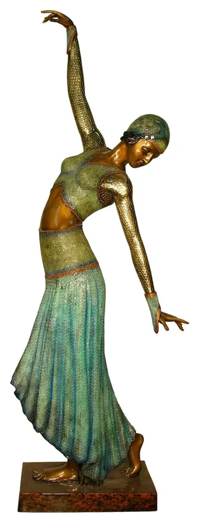 The "Costumed Dancer" sculpture is a wonderful depiction of the 1920''s influence. Erte-inspired, this sculpture is finished in a multi-bronze patina and will complete your art deco look.