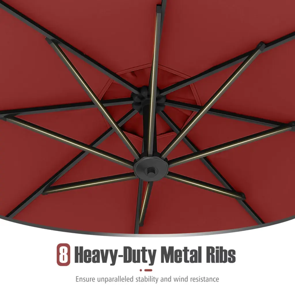 Costway 10 Ft Offset Hanging Umbrella With Base Patio Cantilever Umbrella 360° Rotation Red