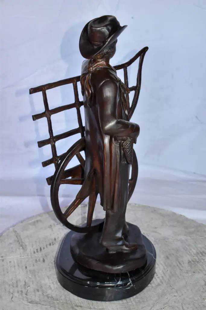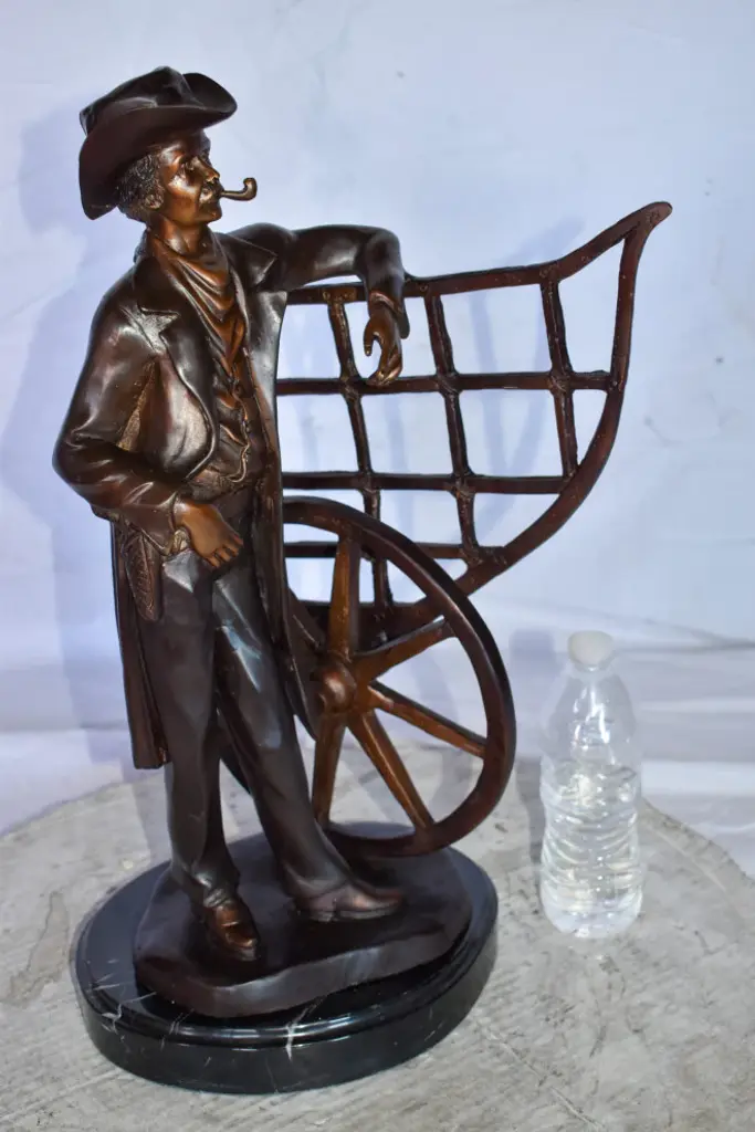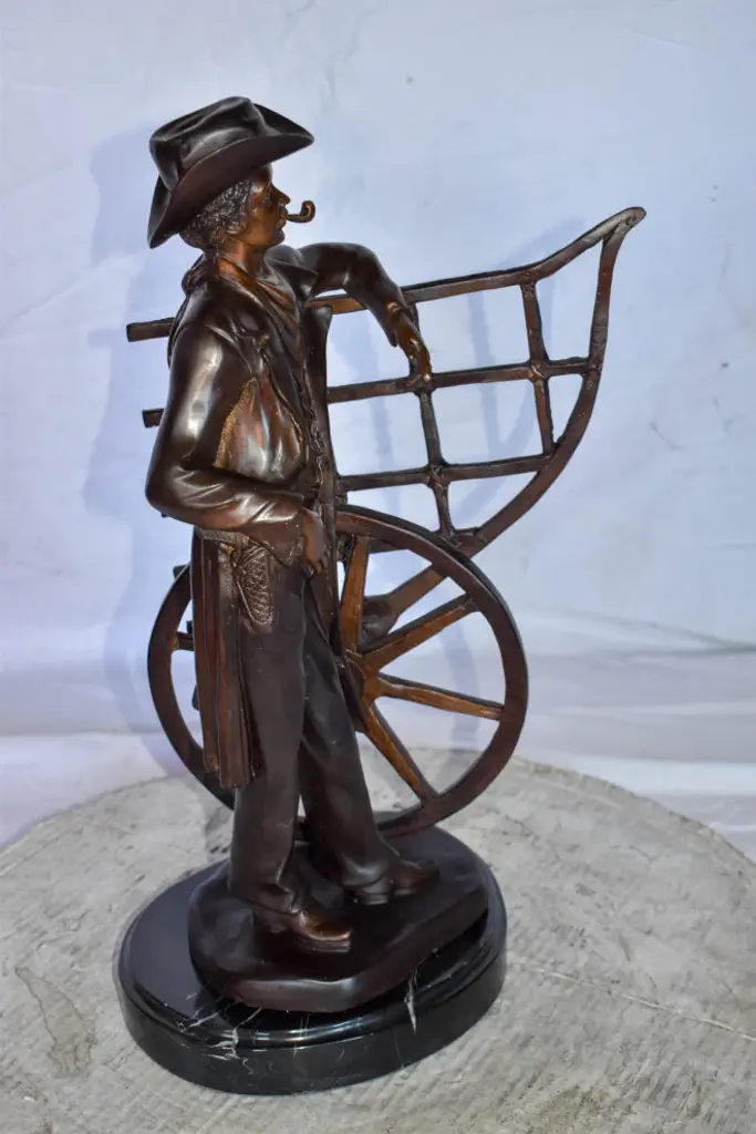 Cowboy Standing By His Carriage Bronze Statue Size: 12" X 8" X 23"h
