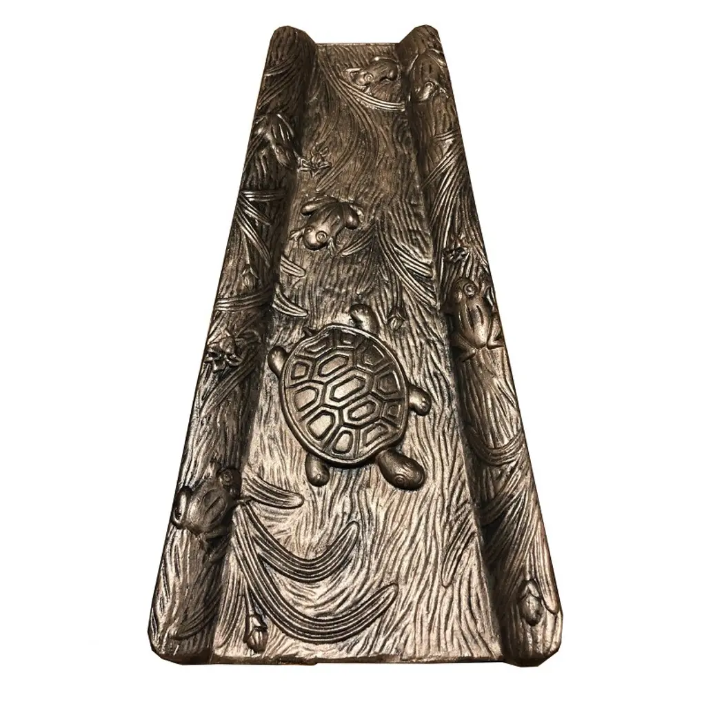 This charming Creature Comforts Bronze Frog and Turtle Sculpture from the foundry of Mark Hopkins is designed by wildlife artist Eli Hopkins in celebration of the harmony of nature. Crafted in the finest bronze, "Creature Comforts" captures two beloved and unique creatures as they interact along the creek shore in amazing detail and warm, evocative tones. Showcase your own passion for the beauty of the wild by displaying it in any space, or give it as a very special gift to be treasured for generations to come. Crafted with pride in the USA. Internationally renowned American artist Mark Hopkins creates bronze sculptures that have thrilled collectors and casual art fans alike for more than two decades. Mark Hopkins'' unique balance of organic inspiration and singular contemporary design has been called "bronze in motion" for its fluid look, which often appears to display natural beauty in defiance of gravity. About Mark HopkinsMark Hopkins takes his inspiration for every facet of life on Earth, from the majesty of wildlife to mankind''s interaction with nature, and produces limited-edition pieces that evoke a sense of awe and respect for the mysteries and loveliness of the world around us. Collectors of his work include Barbara Mandrell, Clint Eastwood, Bill Clinton, Colin Powell, George and Barbara Bush and a host of other luminaries and corporations including the National League Association of Baseball Club Owners, the Atlanta National Golf Club, Humana, Coca-Cola and others. Each Mark Hopkins sculpture is crafted with pride in the USA. Captivated by form and design, Mark has personally created a signature style of vibrant vitality resulting from decades of study. Encouraged by parents and teachers from an early age, Mark''s unique talent developed alongside his technical skills of sculpting and casting. As an artist, Mark is constantly challenging himself to render the rich beauty of life and the deep emotion of the human soul into flowing sculptural form, noting "I strive to express beyond the image, to catch spirit, to reveal deeper emotions, and to share joy. "About the Production ProcessFrom the artist''s hand to the final polishing stages, many intricate steps go into the creation of a limited edition bronze sculpture. First the reproduction mold is made in which layers of silicone rubber and plaster are delicately applied to the original work. Then hot wax is poured into the reproduction mold to form an exact replica of the original sculpture. When the wax replica is removed from the mold, it is then inspected and refined or "chased" by hand to remove any imperfections that may have occurred in the reproduction process. Next, ceramic cup and wax sprues, or gates, are added which later will help channel the molten bronze into the shell to create the sculpture. The next step is creating the ceramic shell by alternately dipping the wax replica over a period of several days into a vat of liquid slurry, then a vat of silica crystals. The shell is then set to dry, and the process repeats until the shell has reached the appropriate thickness and strength. The finished shell is placed in a high temperature oven that melts and removes the wax (the traditional "lost wax" method). The hardened or "fired" shell is secured, so the molten bronze can now be poured into the wax impression.