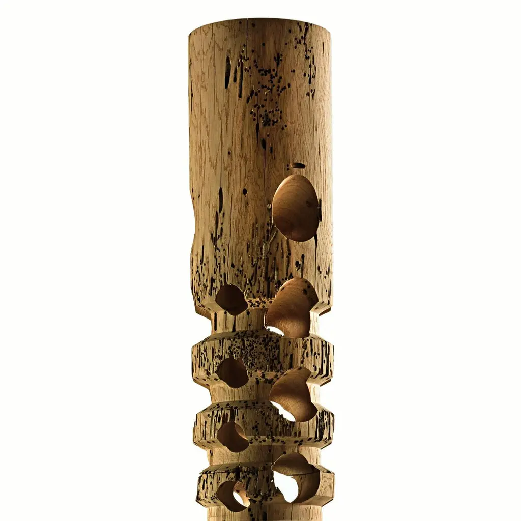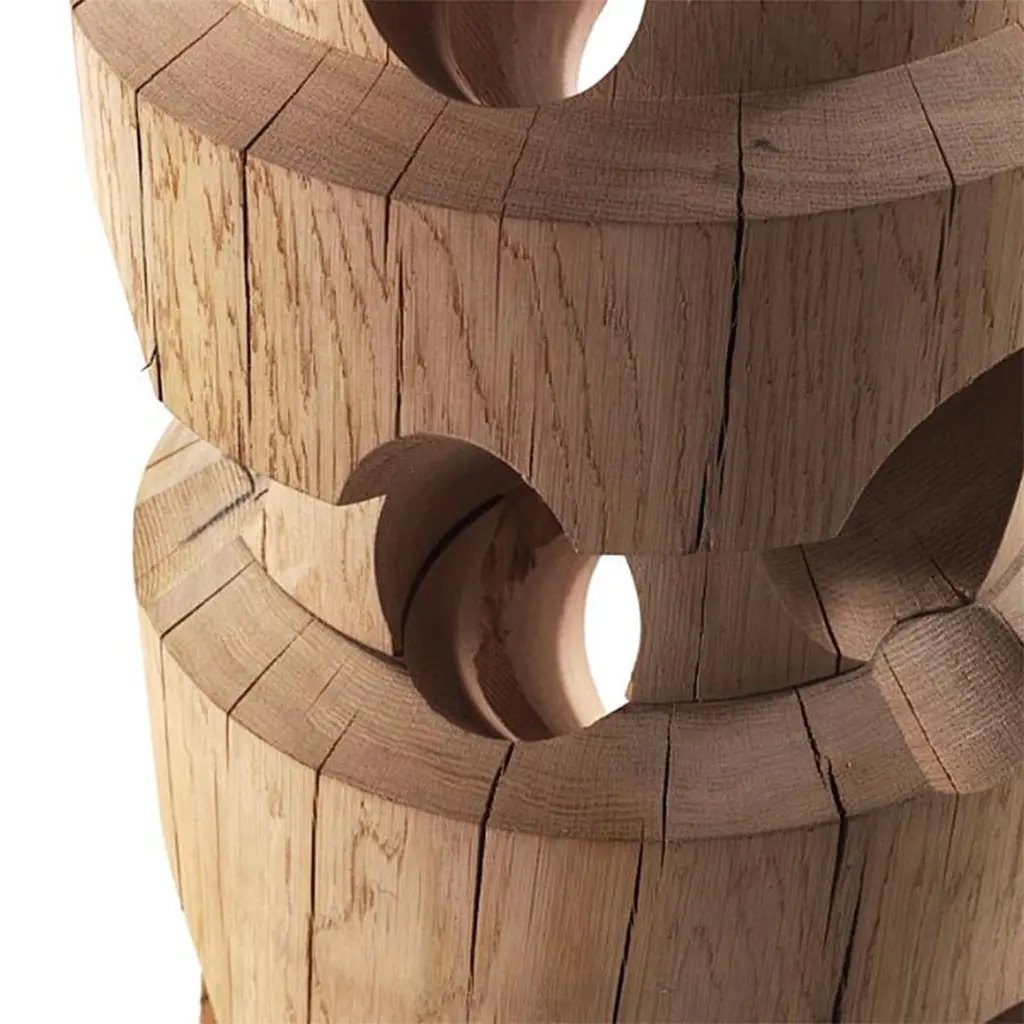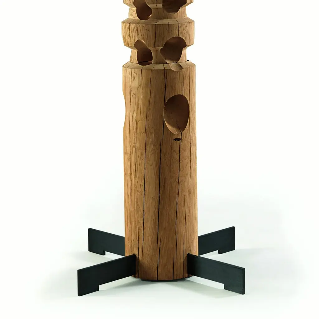 Sculpture crossing raw oak all in solid raw oakfrom Venice canals columns. With iron base.Measure: Base diameter: 90cm.